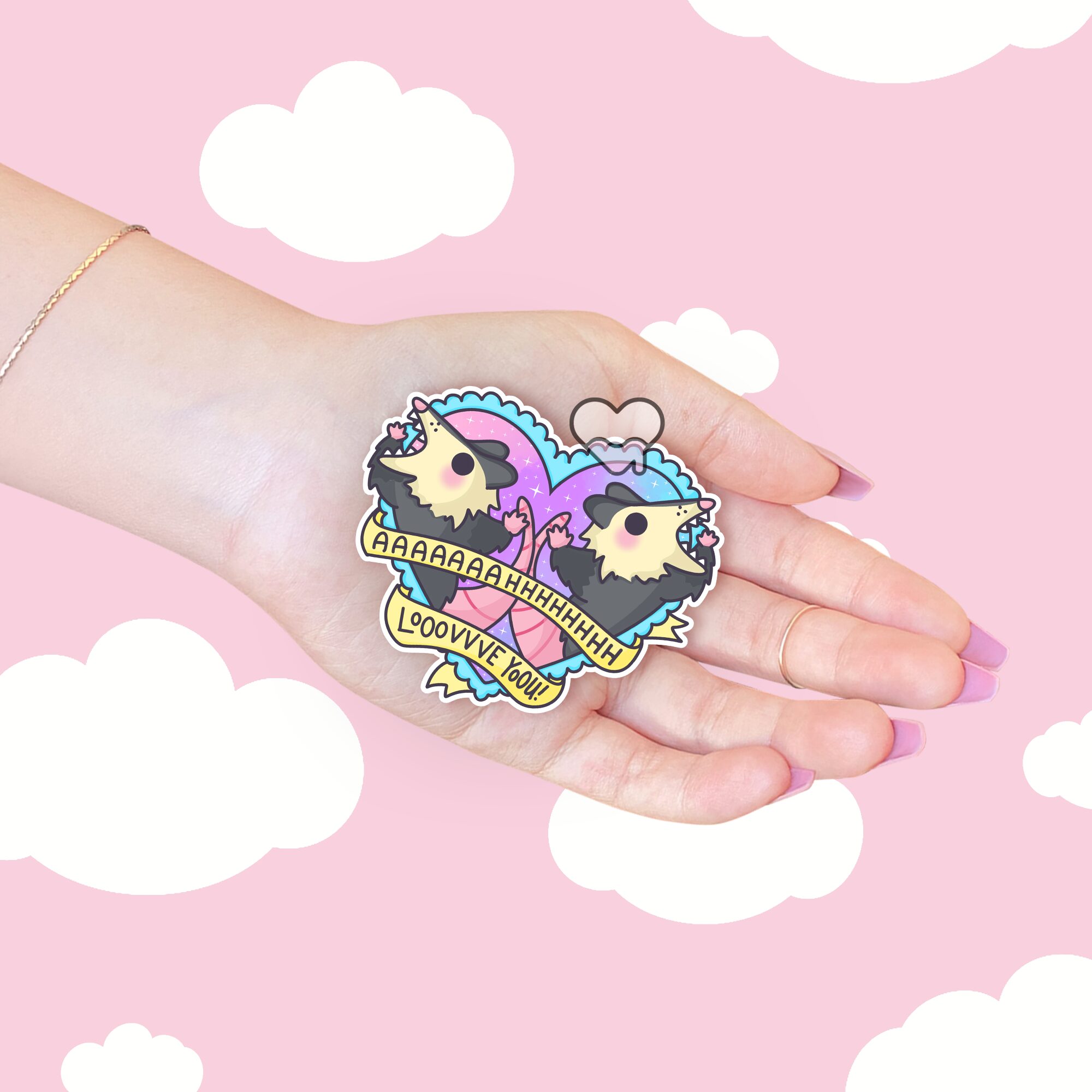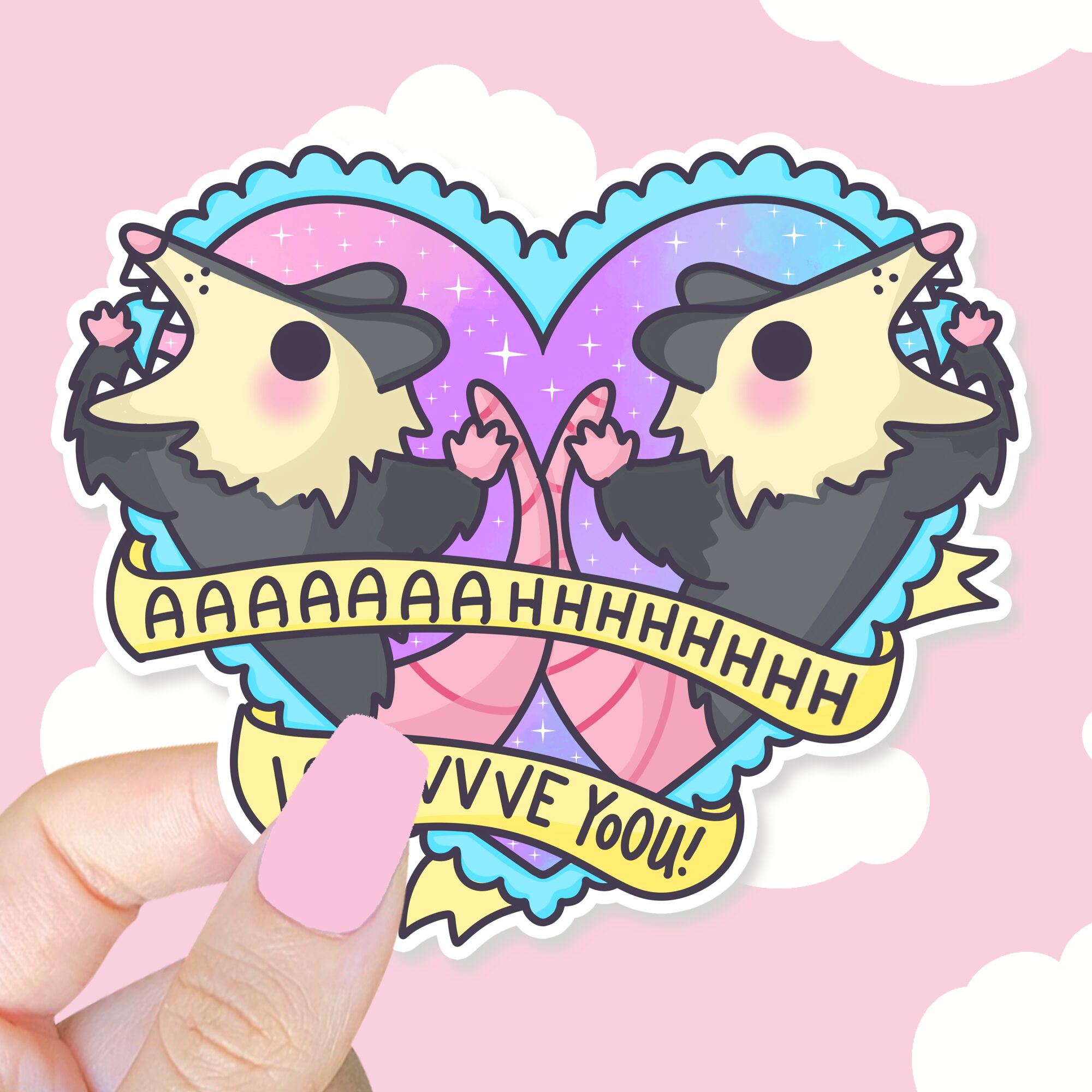 Please note that slight color variations may occur due to differences in screen settings, but rest assured that each sticker is thoughtfully crafted to capture the vibrant, fun essence of our design. Bring a little humor and a lot of heart to your life with the “Ahh I Love You Possum Sticker”—because love, like a possum scream, is unforgettable!🌈