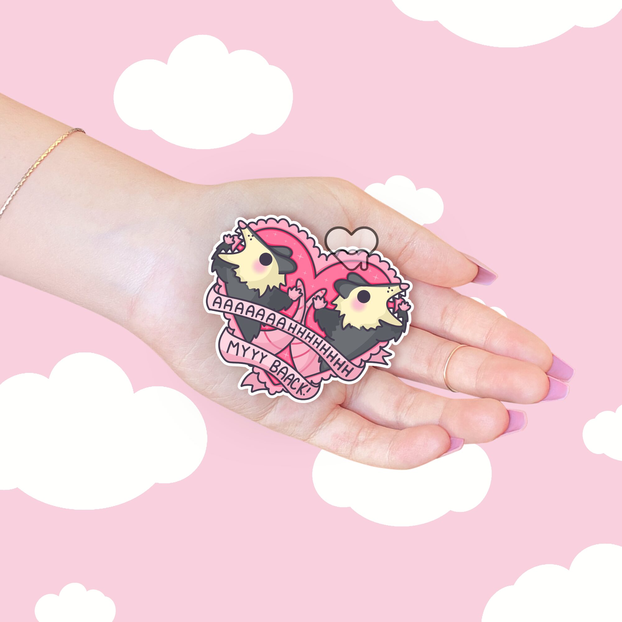 Hand-drawn and designed by Lil Charmery, the “Ahh My Back Possum Sticker” showcases our commitment to unique and whimsical art. Each sticker is crafted from original designs, making it a one-of-a-kind addition to your collection. The screaming possums bring a playful energy to the design, expressing that familiar cry we’ve all felt when our bodies remind us we’re not as young as we used to be! It’s the perfect way to embrace the struggles of growing older (or just having a bad day) with a smile and a laugh.