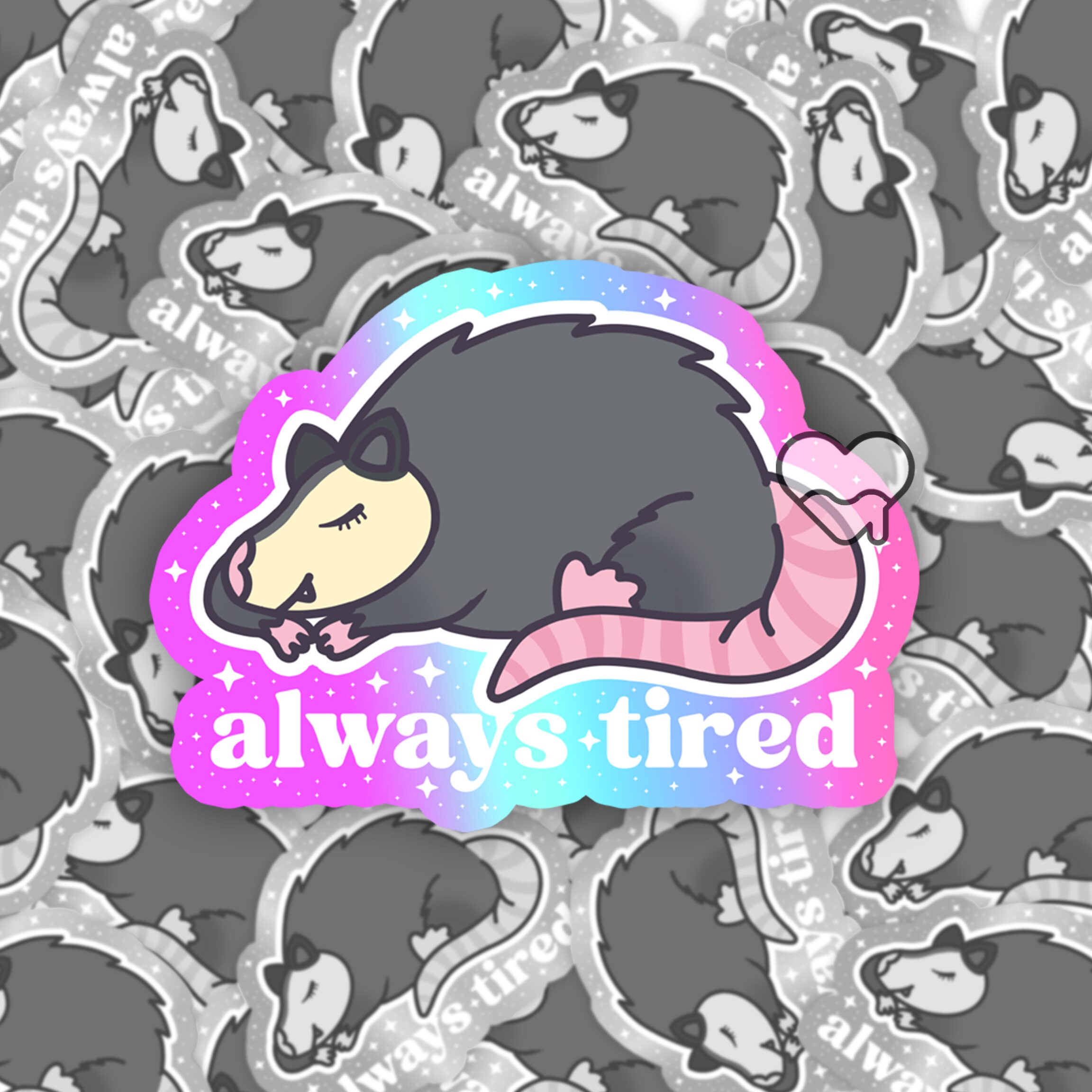 This sticker is a perfect way to decorate your laptop, journal, water bottle, or any surface that could use a little extra personality. It’s also a great gift for anyone who embraces their tiredness with pride or just loves cute possums. Let the world know that you’re doing your best despite being perpetually exhausted with the Always Tired Possum Sticker.🌈