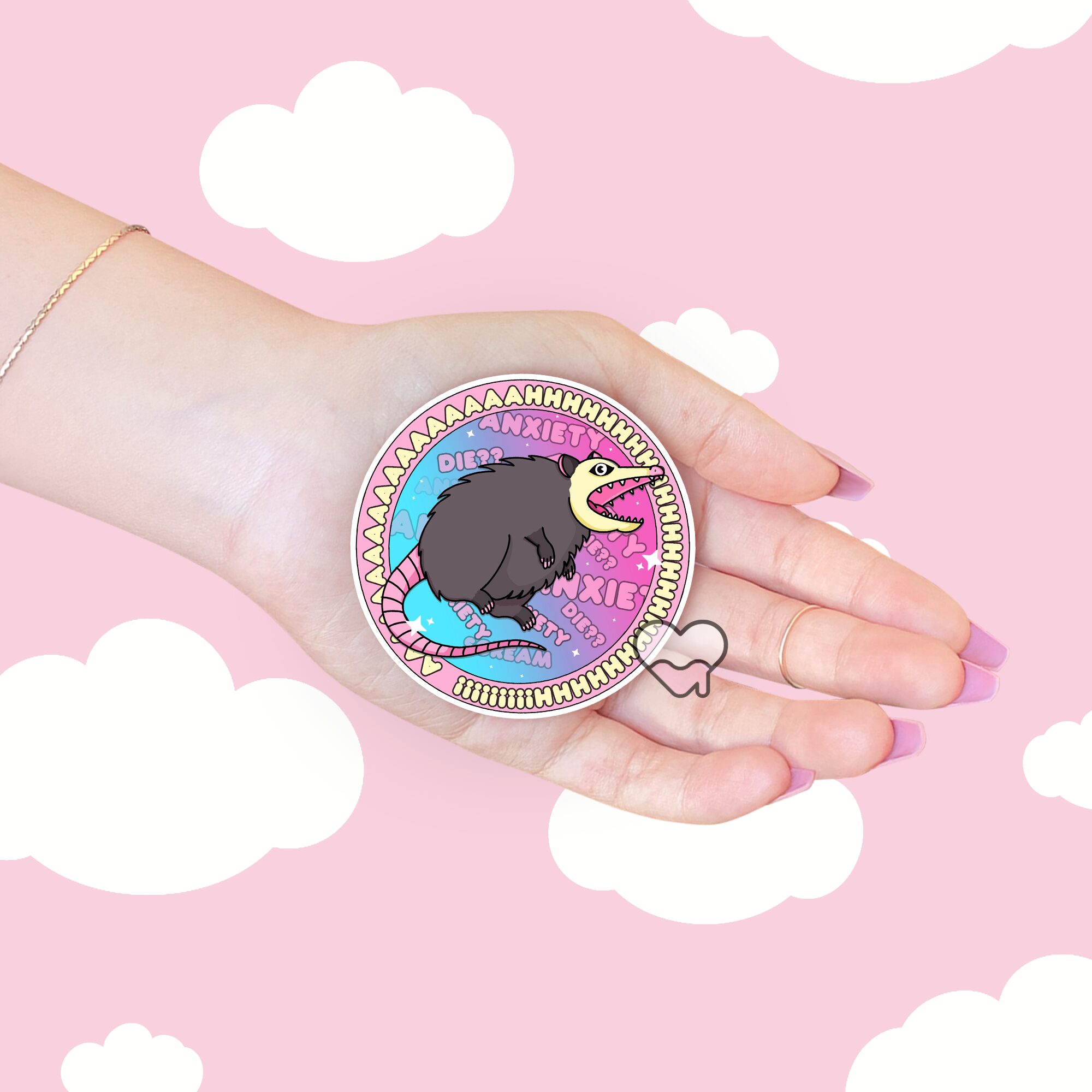 Anxiety Possum Round Sticker Details❤️