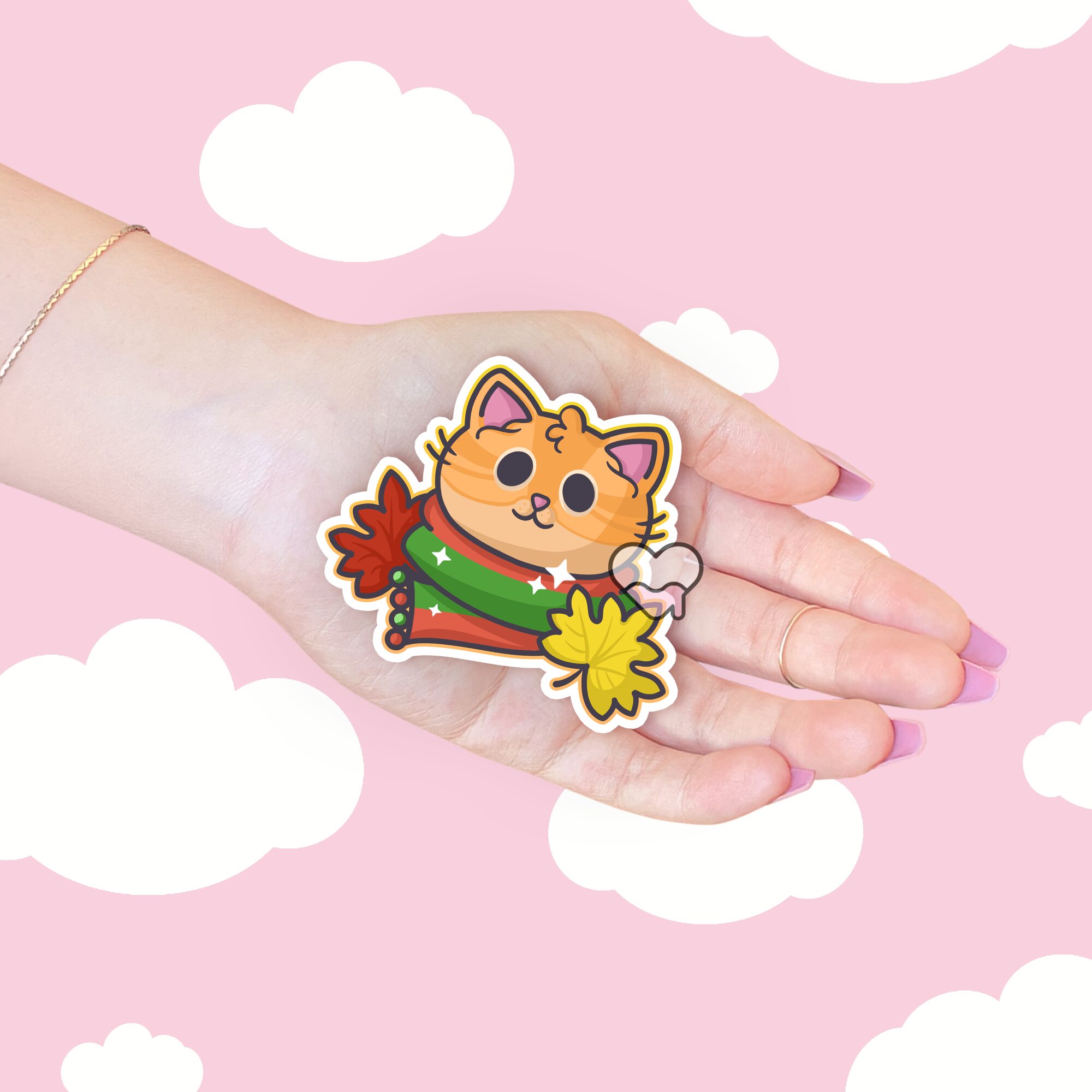 This charming sticker makes a wonderful gift, too—perfect for cat lovers, fall enthusiasts, or anyone who enjoys adding a touch of cute, cozy vibes to their everyday items. Imagine surprising a friend with this adorable autumn kitty, ready to brighten their day and add a little seasonal magic to their belongings. It’s not just a sticker—it’s a way to carry a piece of the fall season with you, wherever you go.