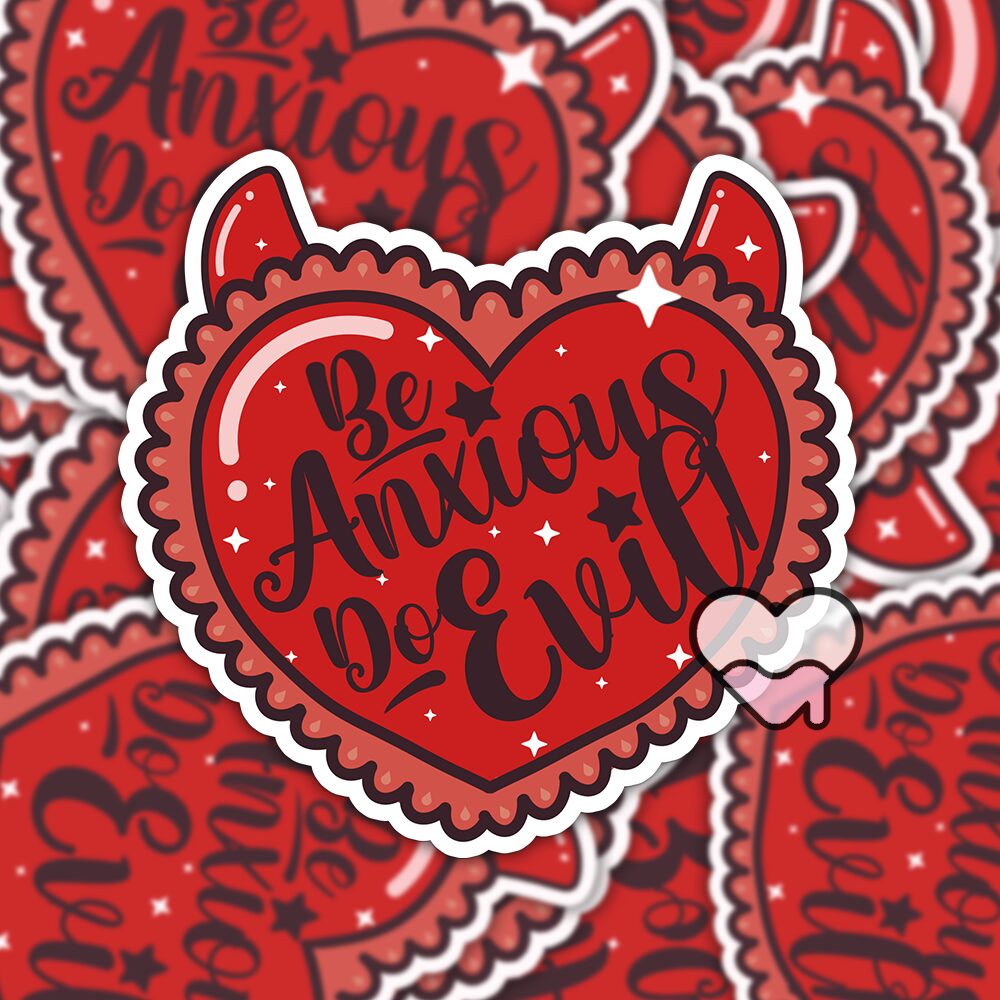 Introducing the “Be Anxious Do Evil Sticker,” a wickedly playful design available now on Lil Charmery. For those who walk the line between anxious overthinker and mischievous rebel, this sticker speaks to your duality. Handmade from my original artwork, it features a cute yet devilish heart adorned with horns, paired with the delightfully sassy phrase “Be Anxious Do Evil.” This sticker is perfect for anyone who’s ever felt like their anxiety has a mischievous side or wants to embrace a little chaos in their everyday life.
