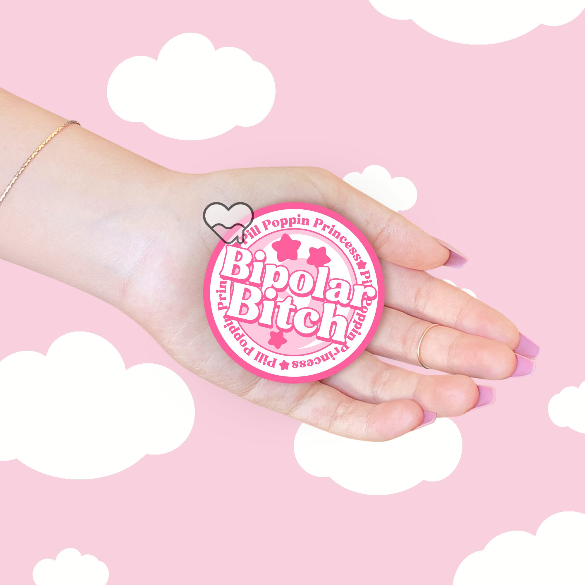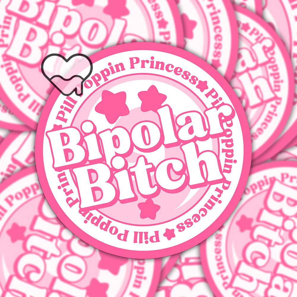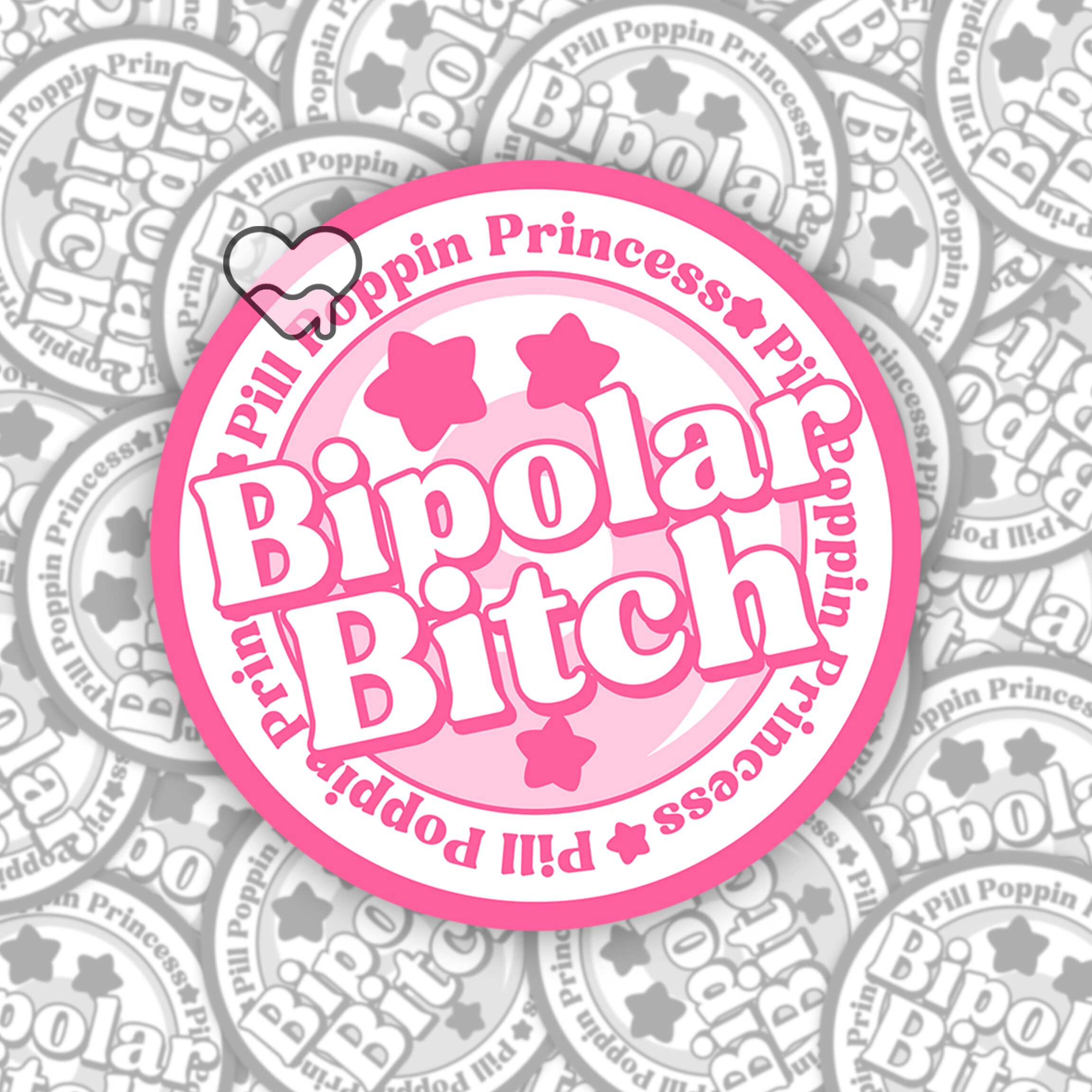 Created and illustrated by me, Becca Bleu, in the whimsical and wonderfully sassy world of Lil Charmery 💖💜💙💚💛🧡❤️, this design is equal parts cute and fierce. The soft pink circle brings a sweet, playful vibe, while the bold “Bipolar Bitch” lettering delivers the punch. I love making art that’s fun and sparkly, but I also believe in creating pieces that make people feel strong, seen, and completely unafraid to be themselves. This sticker is just that — a fearless little reminder that your voice, your story, and your sparkle all matter.