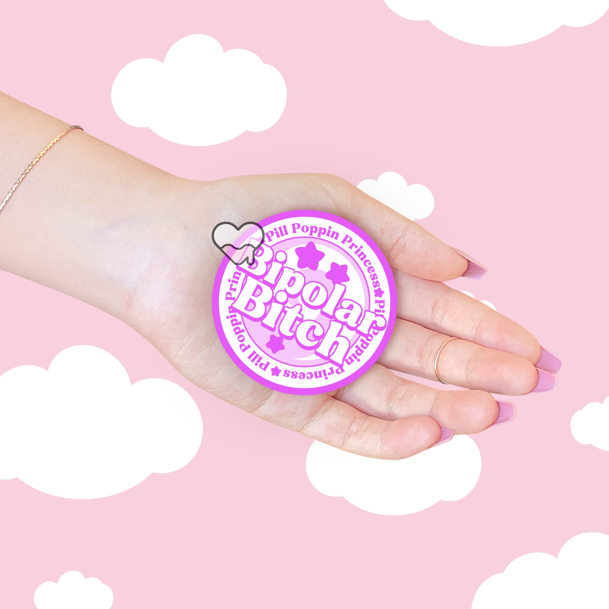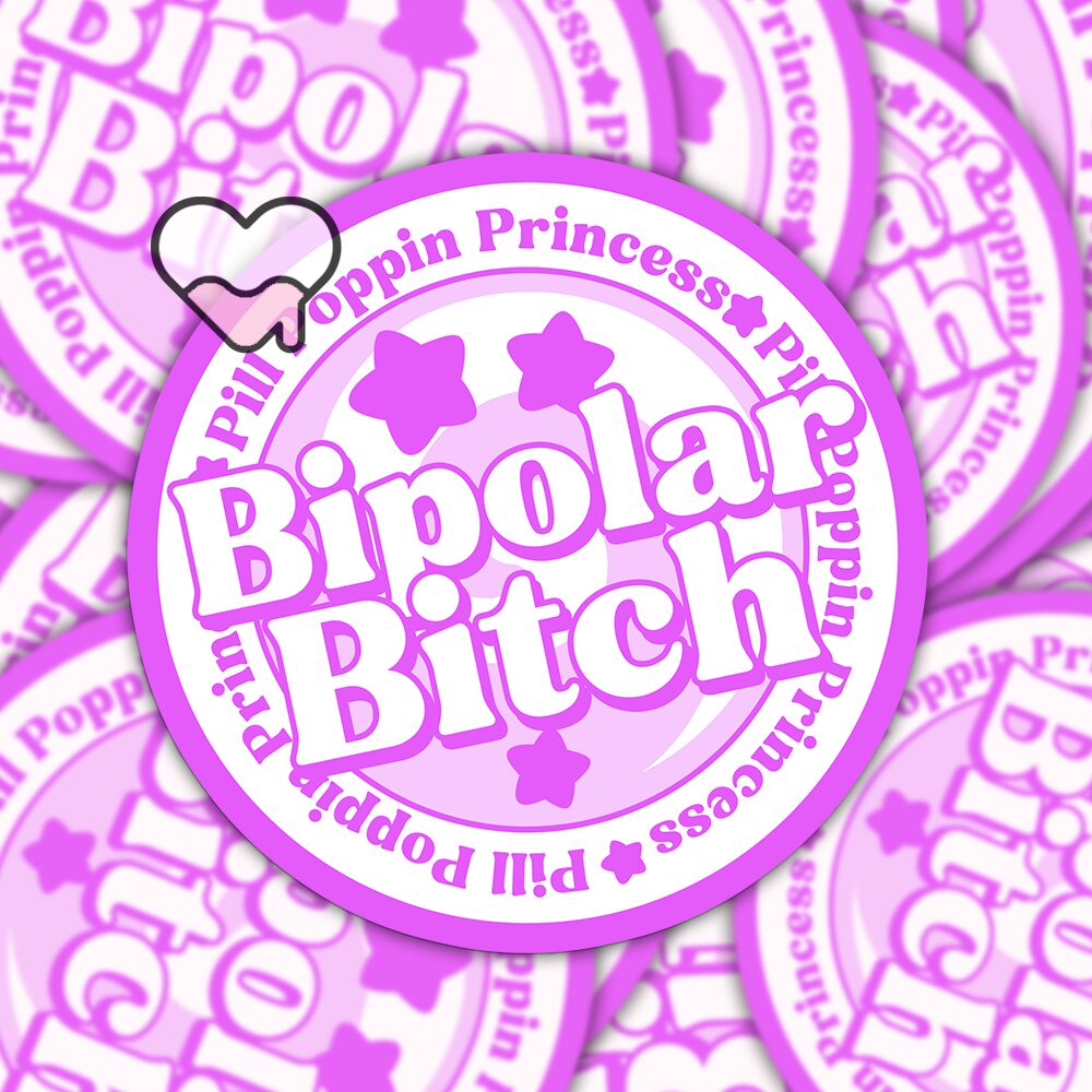 Designed and illustrated by me, Becca Bleu, in my colorful, whimsical, and slightly sassy Lil Charmery world 💖💜💙💚💛🧡❤️, this design blends cute with fierce. The rich purple circle radiates confidence, while the striking “Bipolar Bitch” lettering makes the message crystal clear. I adore creating sweet, sparkly designs, but I also love making art that makes people feel seen, strong, and completely unapologetic about who they are. This sticker isn’t just decoration — it’s a badge of boldness you can stick anywhere you want your truth to shine.