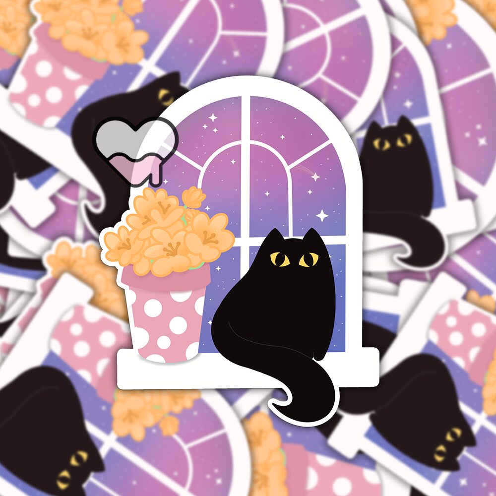 Designed and illustrated by me, Becca Bleu, in my whimsical and colorful Lil Charmery world 💖💜💙💚💛🧡❤️, this sticker blends my love for cute, charming characters with my fascination for all things sparkly and otherworldly. The kitty’s soft, curious expression and the dreamy galaxy sky beyond the window create a moment that feels both peaceful and full of possibility — like something magical is just about to happen. Whether you’re a cat lover, a stargazer, or someone who loves a story hidden in the details, this design is made to make your space feel a little more enchanting.