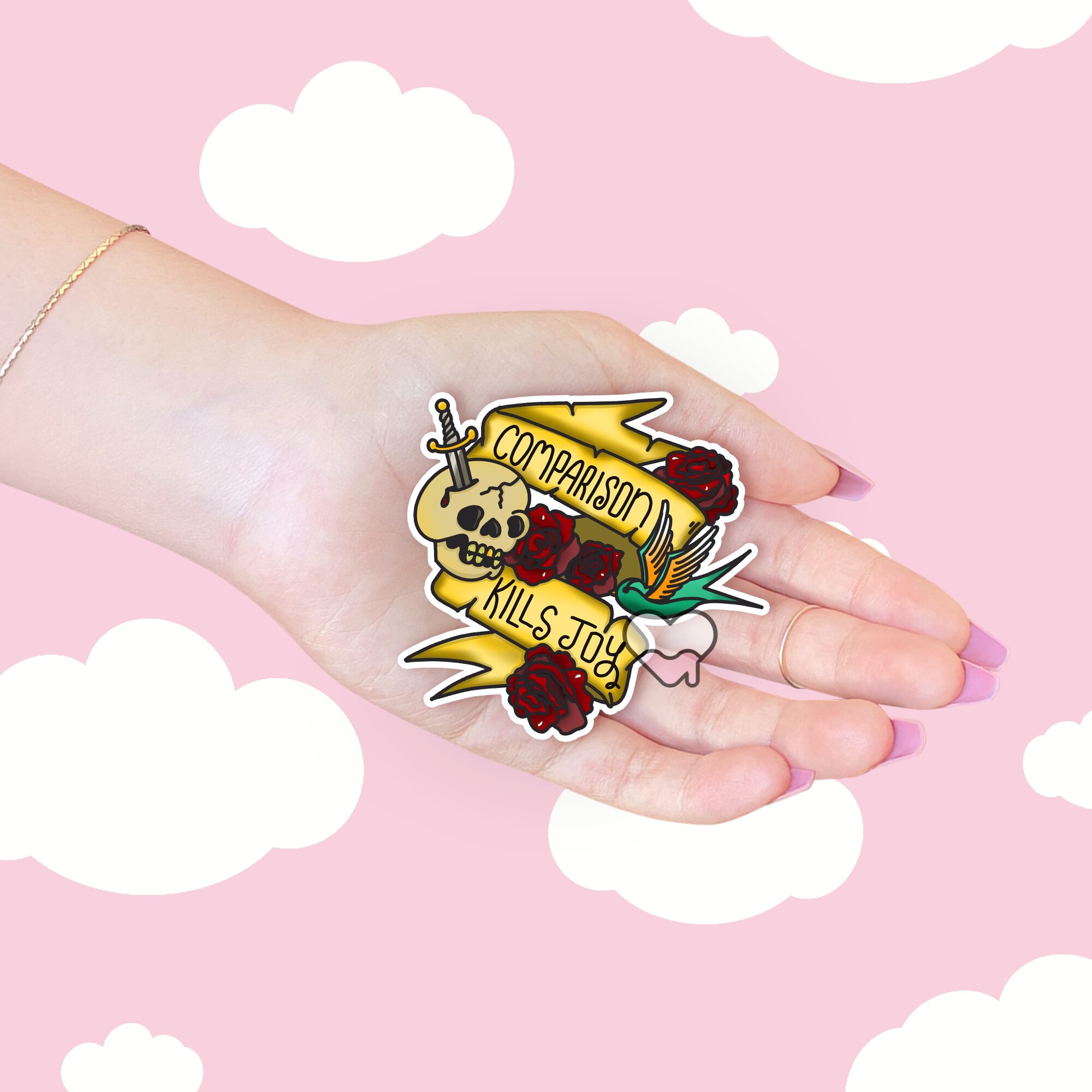 The Comparison Kills Joy Sticker makes a thoughtful gift for a friend going through a tough time, a loved one embarking on a self-growth journey, or even for yourself as a token of self-compassion. It’s small enough to fit anywhere, yet its message has the power to make a big difference. Let it be a reminder that your path is uniquely yours, and your joy is something worth fiercely protecting ❤️.