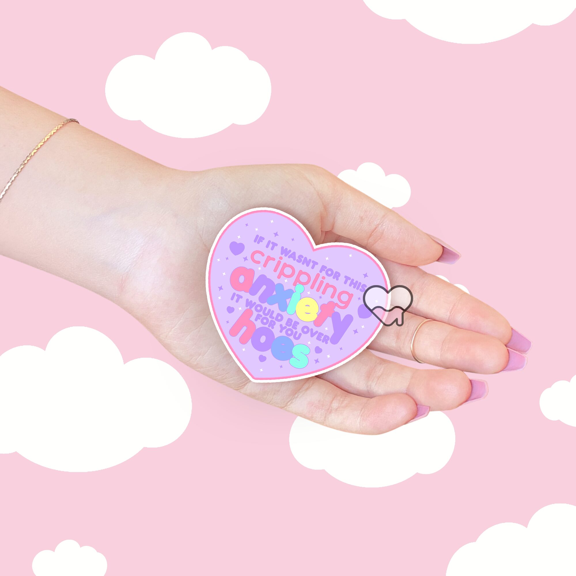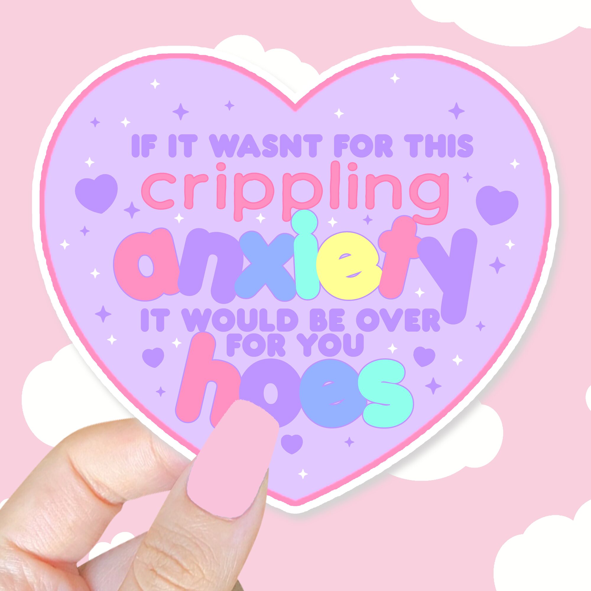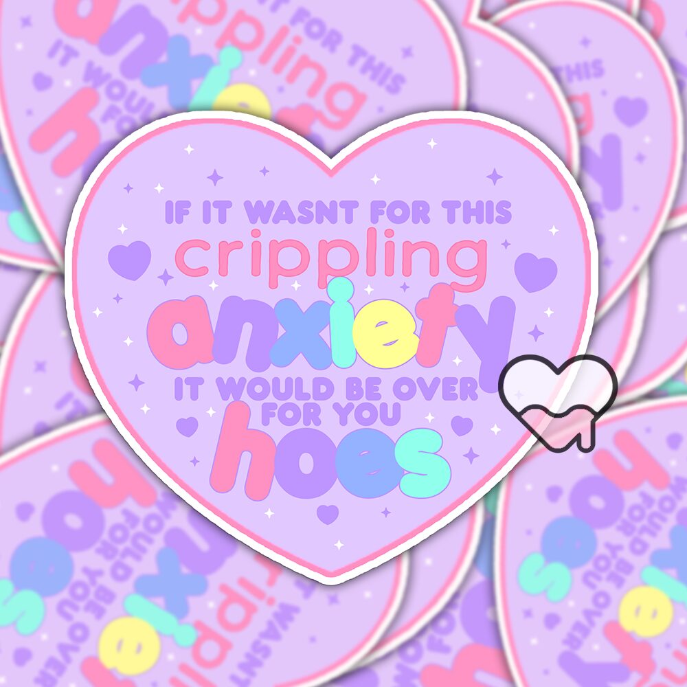 The Crippling Anxiety Sticker is a bold, sassy, and totally relatable piece of art for anyone who knows the struggle of living with anxiety—but also knows how to meet it with humor and a little bit of attitude. Featuring a bright, eye-catching heart and the unapologetically honest phrase, “If it wasn’t for this crippling anxiety, it would be over for you hoes,” this sticker blends self-awareness with a playful edge. It’s the kind of piece that makes you laugh while also hitting way too close to home 😅.