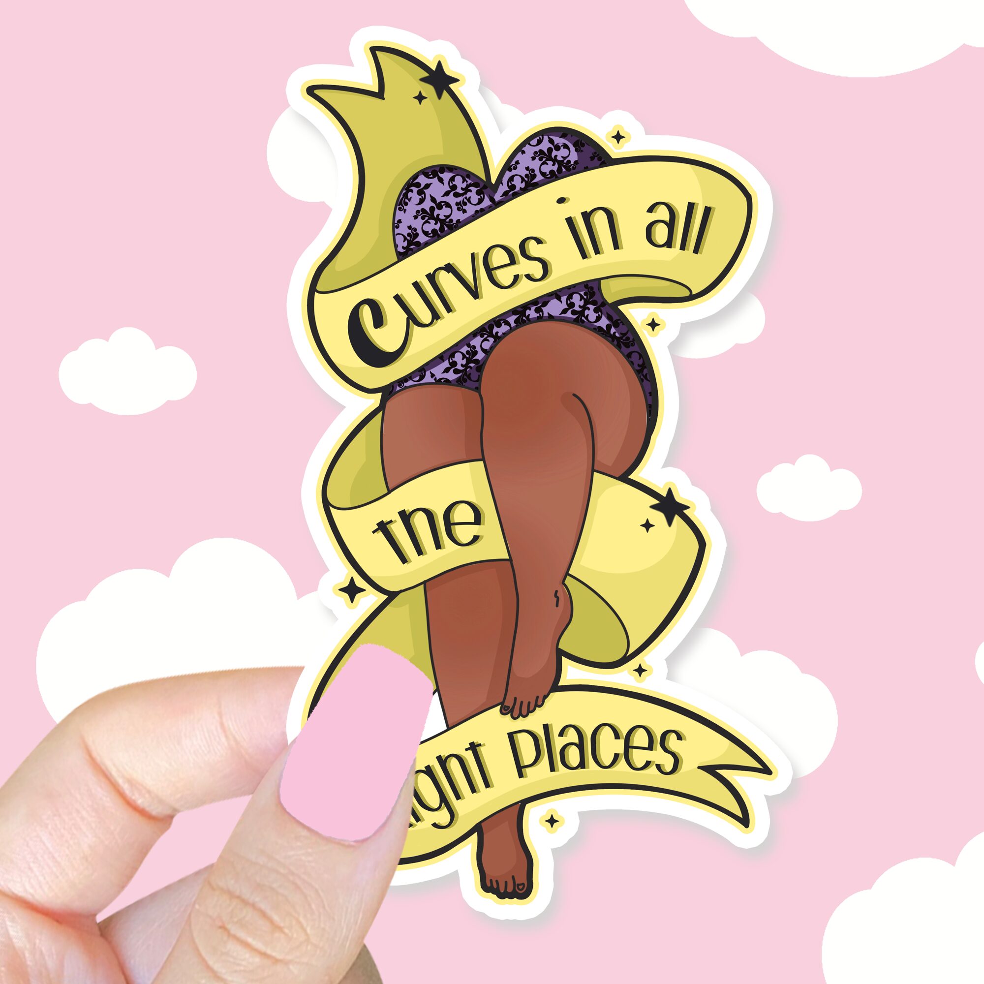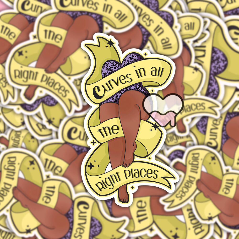 The Curves In All The Right Places Yellow Sticker is more than just a cute decoration—it’s a badge of confidence and an affirmation you can carry with you. It celebrates individuality, challenges outdated beauty standards, and radiates happiness with its sunny hue 🌼. Whether it’s a treat for yourself or a thoughtful gift for someone special, this sticker is a beautiful way to say, “I love my body, and I’m proud of it.”