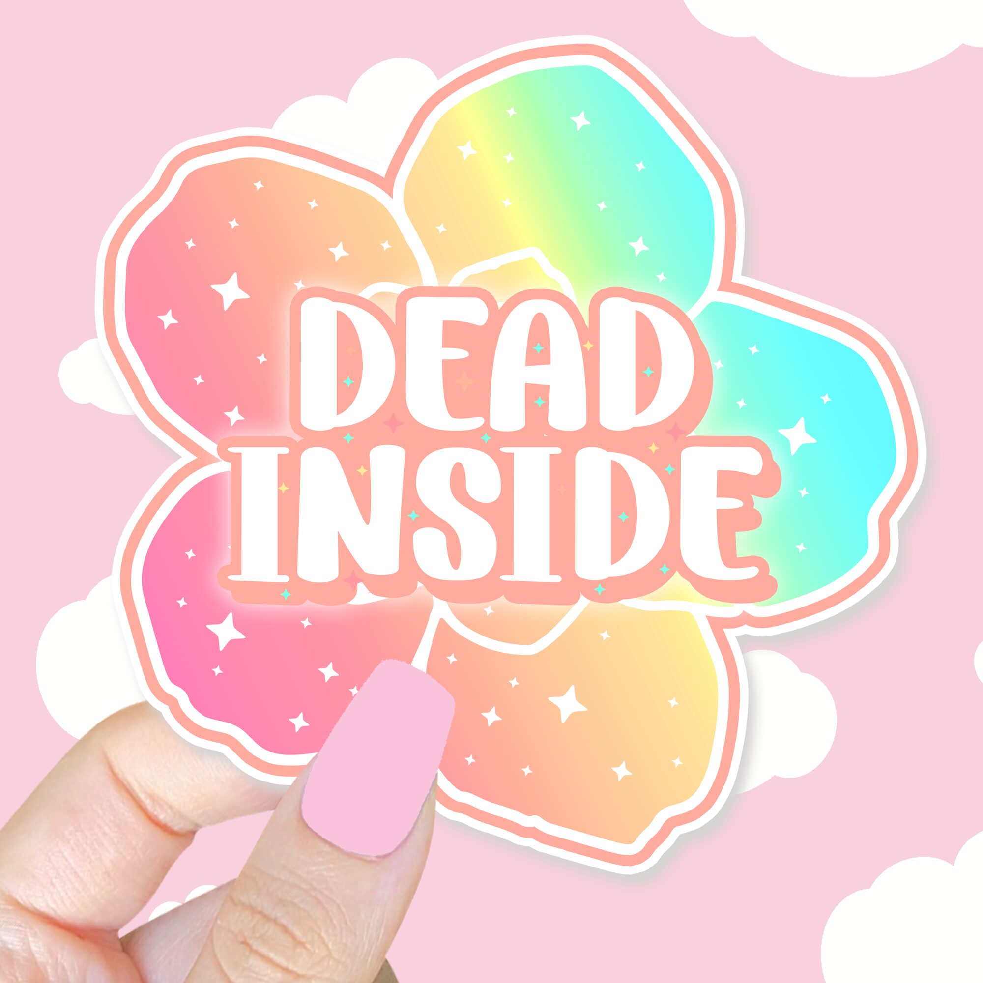 The Dead Inside Flower Sticker is a perfect mix of soft pastel beauty and cheeky, dark humor, making it an unforgettable little piece of art. At first glance, you’re greeted with a delicate flower, its petals blending together in a dreamy pastel gradient of calming colors. But then your eyes land on the bold phrase “Dead Inside,” and the contrast instantly sparks a smile. It’s that perfect balance between sweet and sarcastic, a wink to anyone who appreciates humor with a twist 🌸.