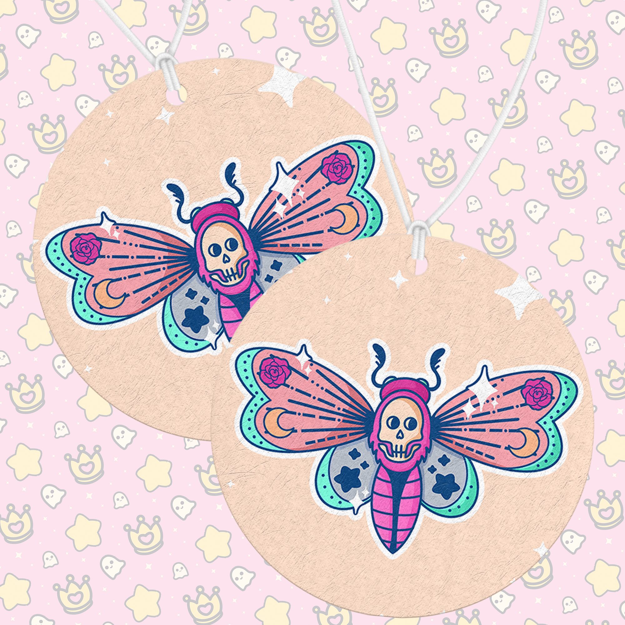 Add a touch of whimsical darkness to your space with the “Death Heads Moth Air Freshener.” This double-sided air freshener features an adorable pastel death’s-head moth, blending eerie charm with soft, playful colors. Lil Charmery’s exclusive artwork transforms the traditionally ominous moth into a cute, approachable creature, making it a perfect accessory for anyone who loves gothic-inspired designs with a lighthearted twist. 🦋💀