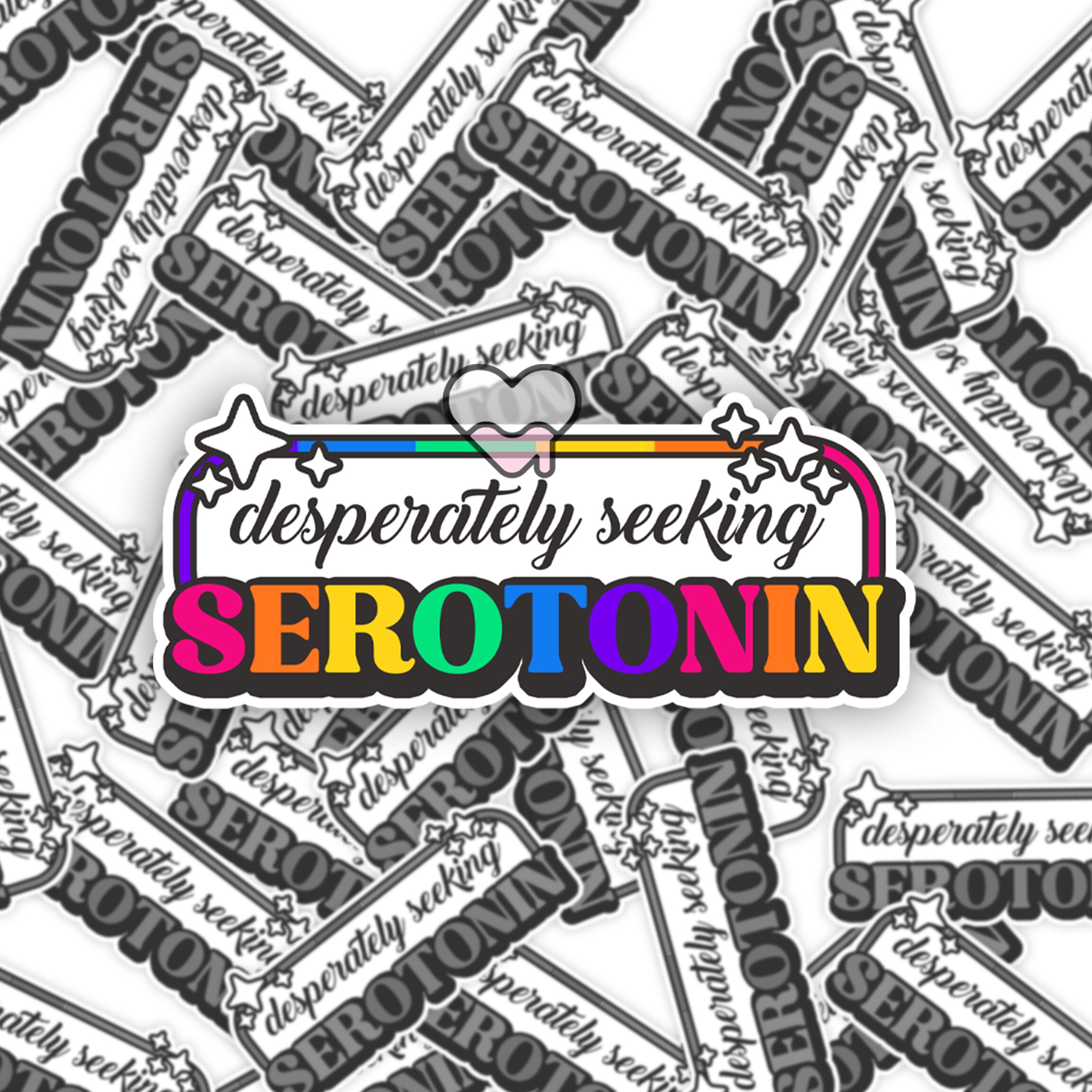 The Desperately Seeking Serotonin Sticker isn’t just a piece of decoration—it’s a badge of honesty, a small but mighty way to share your truth, and maybe even find a laugh in the process. After all, the search for serotonin is real, but at least you can make it look good while you’re on the journey.