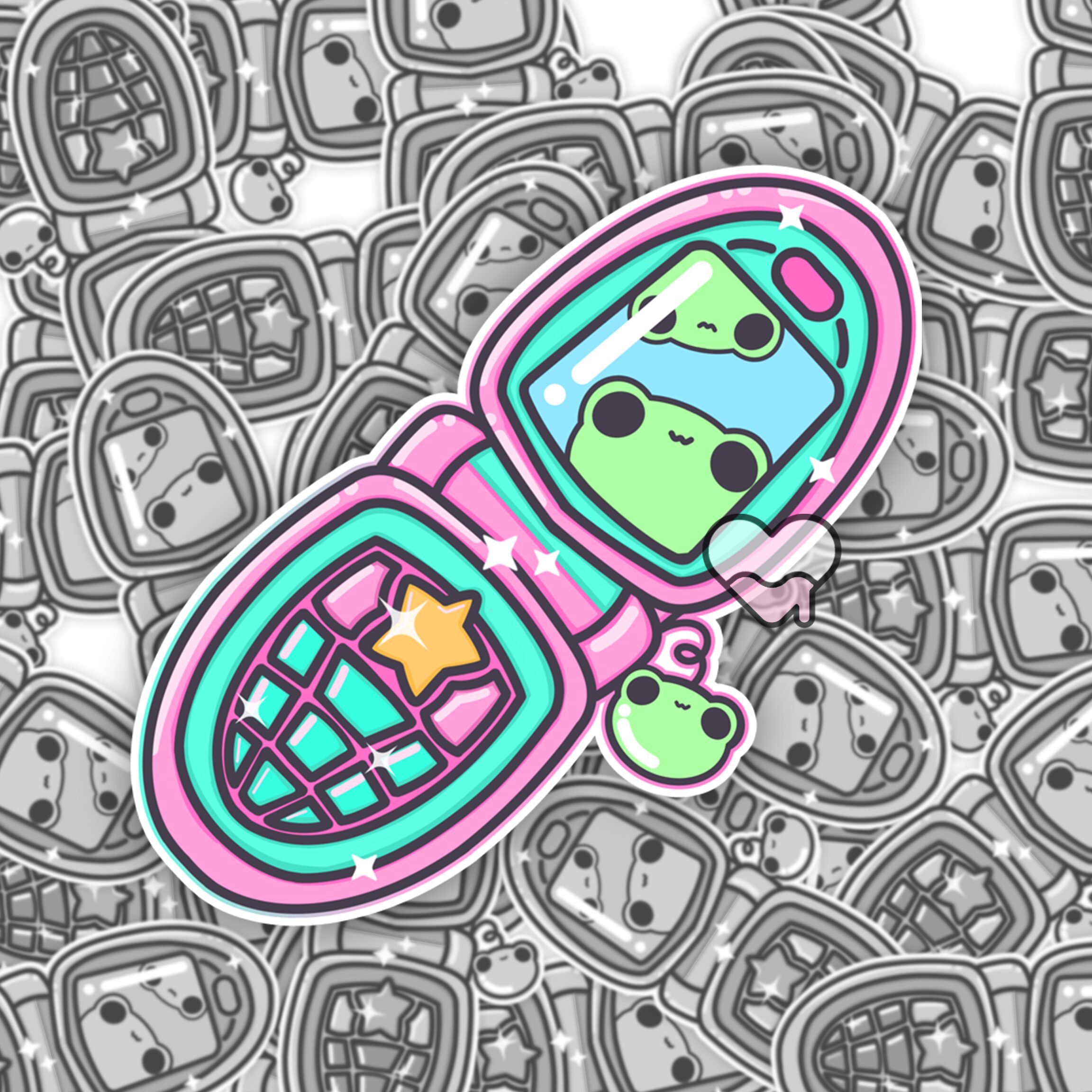 Whether you remember the flip phone days with fondness or just love the playful aesthetic, this sticker is perfect for adding a nostalgic yet fun touch to your belongings. Stick it on your laptop for a quirky work companion, place it on your water bottle so your froggy friend can join you on the go, or let it brighten up your notebooks and planners. Wherever it ends up, it’s bound to bring a smile.