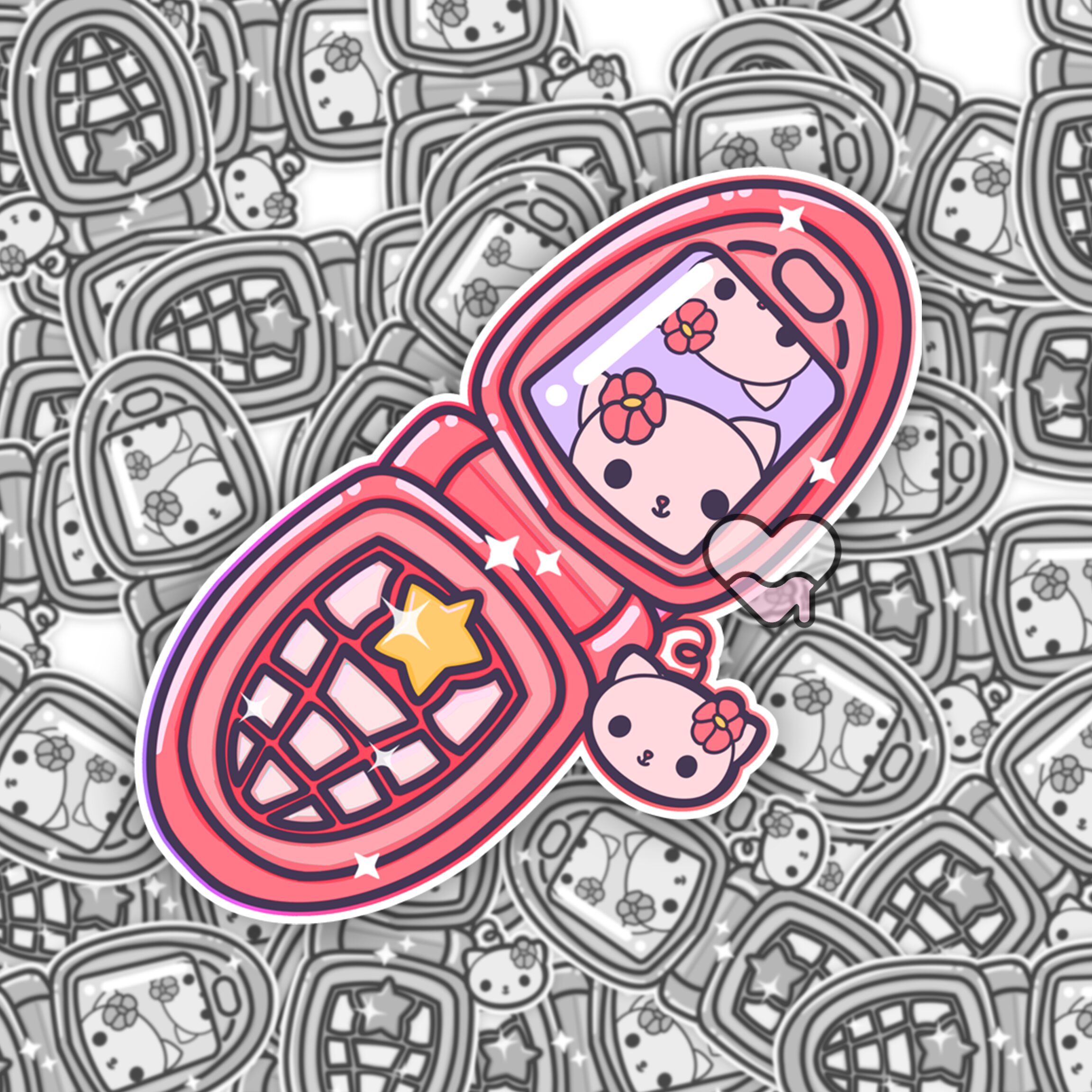 Flip Phone Fun Kitty Friend Sticker Details❤️