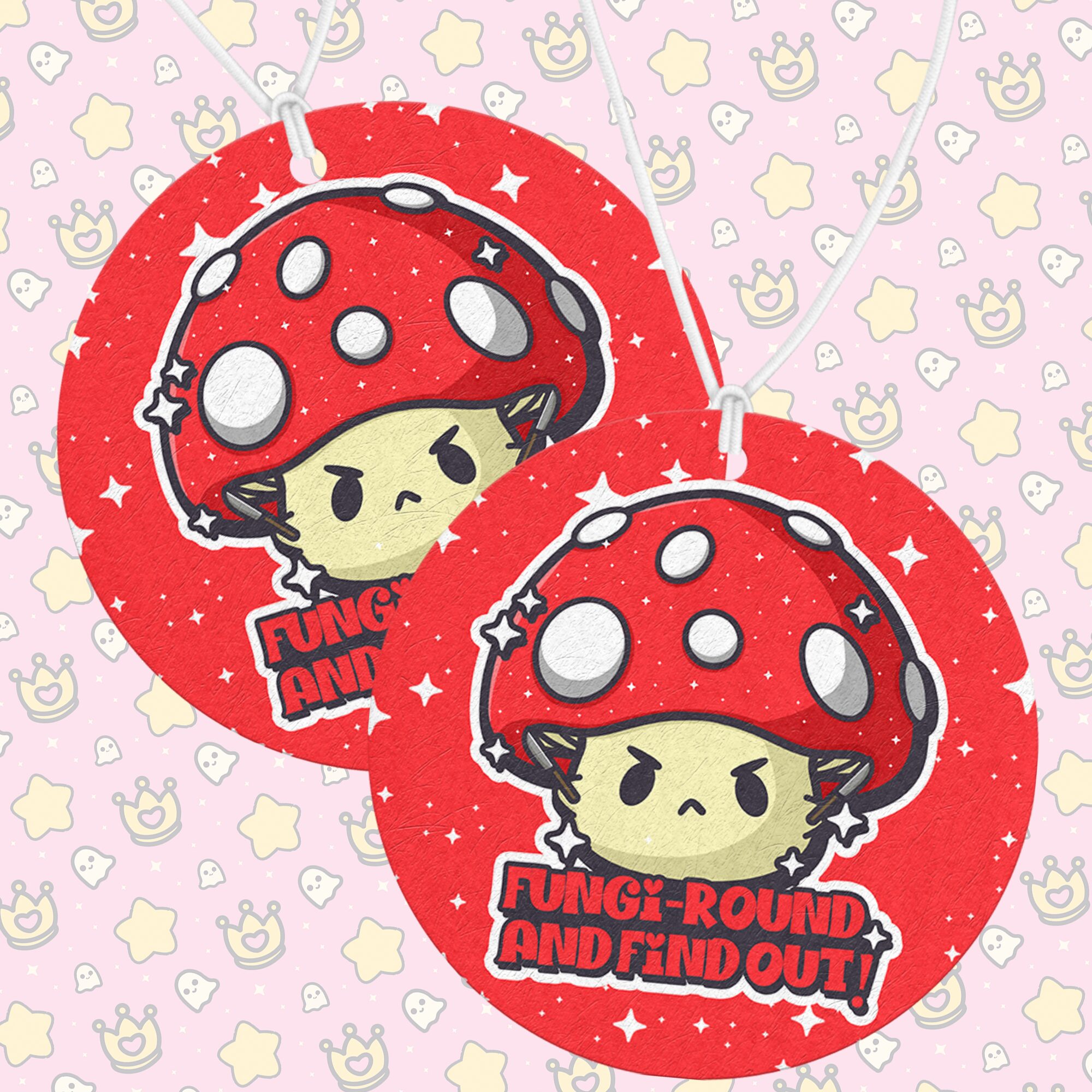 Add a quirky and playful touch to your space with the “Fungi Round And Find Out Air Freshener.” Featuring an adorable little mushroom wielding two knives!