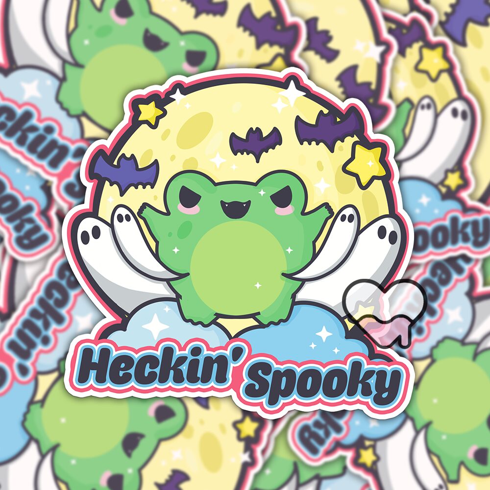 The Heckin Spooky Frog Pink Sticker is here to hop straight into your heart with a perfect blend of cute and creepy charm. This delightfully spooky design features an adorable frog, but not just any frog—this one has a mischievous glint in its eye, a set of tiny vampire fangs, and the kind of attitude that says it’s ready for Halloween all year long. Perched in front of a glowing, full moon, our little frog friend is joined by two playful ghosts, each drifting around as if they’re part of his haunting crew. The bold, fun lettering of “Heckin Spooky!” ties it all together, making this sticker a must-have for lovers of whimsical spookiness. 🌕