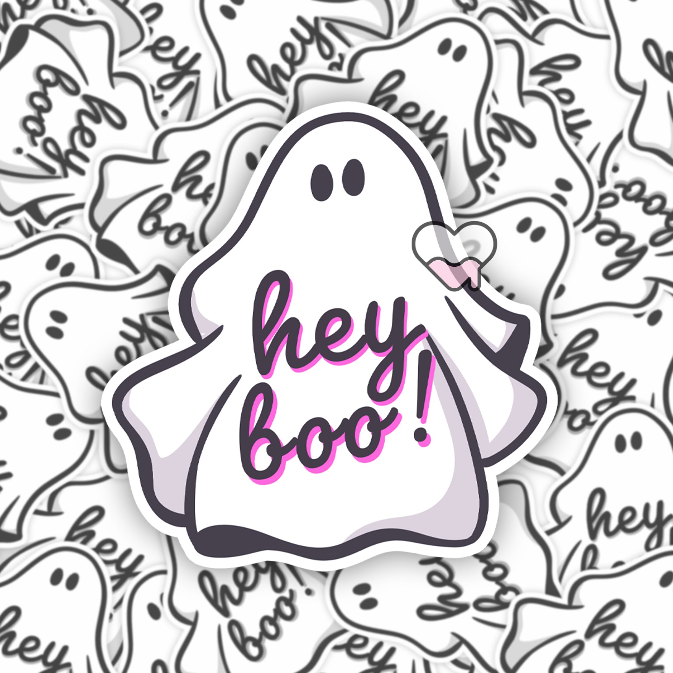 This sticker brings a warm, welcoming energy to any surface you place it on, making it ideal for adding a festive touch to your laptop, water bottle, journal, or phone case. The ghost itself is simple yet full of personality, with just the right amount of whimsy to make you smile every time you see it. The phrase “Hey Boo!” adds an extra dash of charm, making it feel like this little ghost is speaking directly to you—or to anyone who happens to catch a glimpse of it.