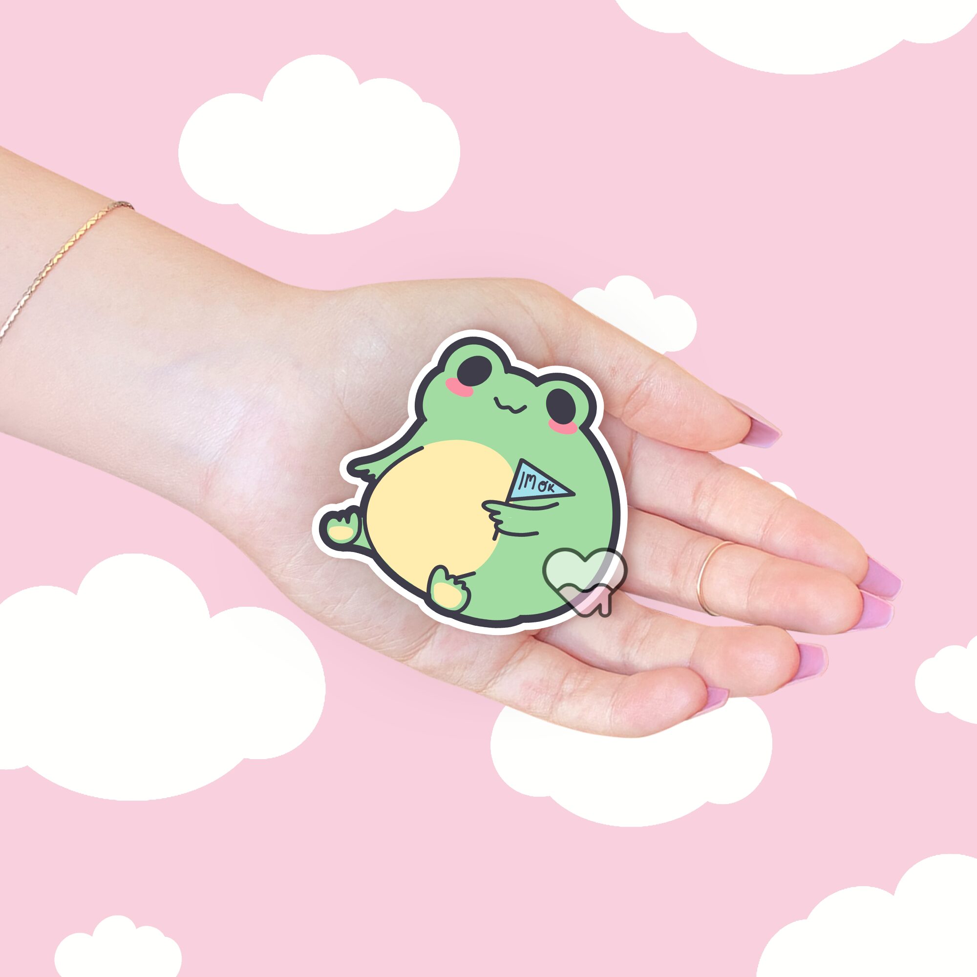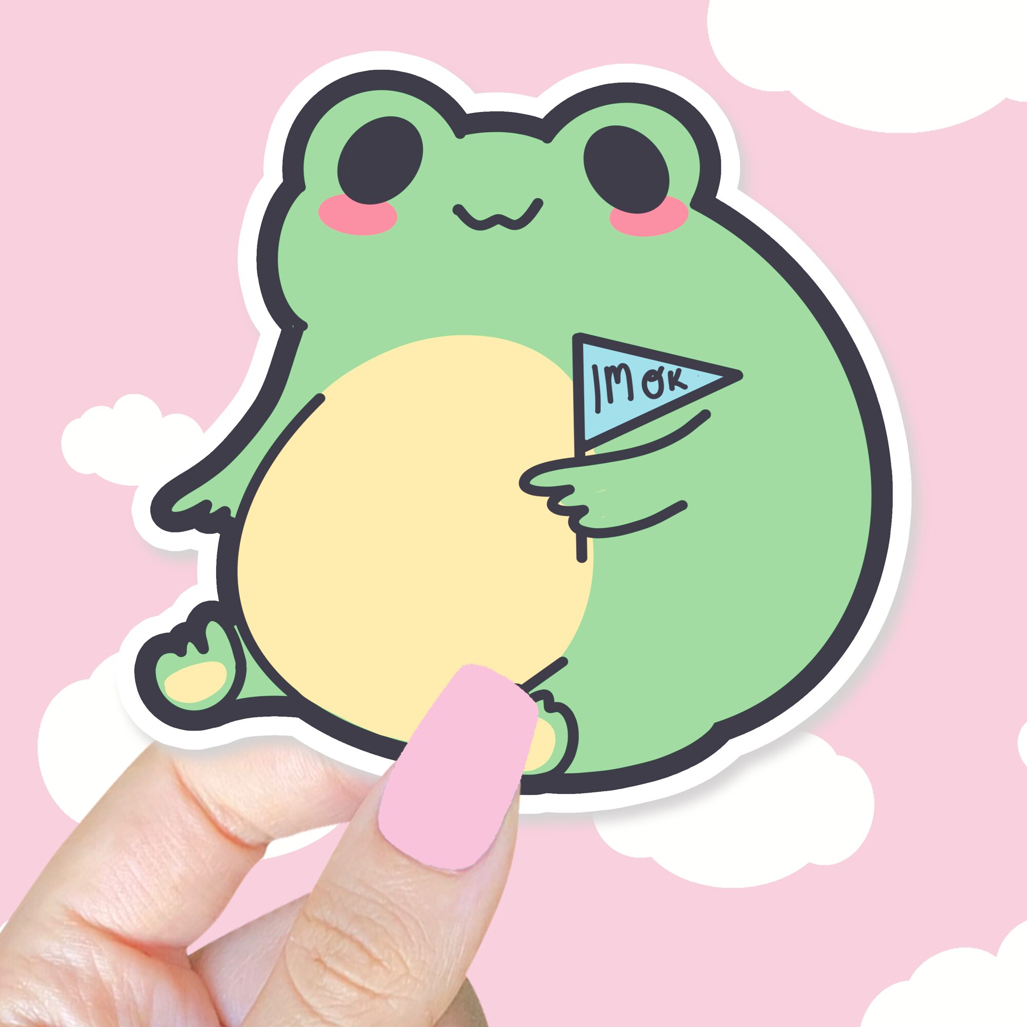 This sticker isn’t just decorative—it’s a little reminder that “okay” can mean a lot of different things, and sometimes it’s enough to simply wave your own little flag and keep going. It makes a great gift for friends who need a small mood boost, as well as a fun treat for yourself when you want your accessories to show a bit of personality and humor. Whether you’re a fan of frogs, love quirky designs, or simply enjoy playful ways of expressing yourself, this sticker fits the bill.