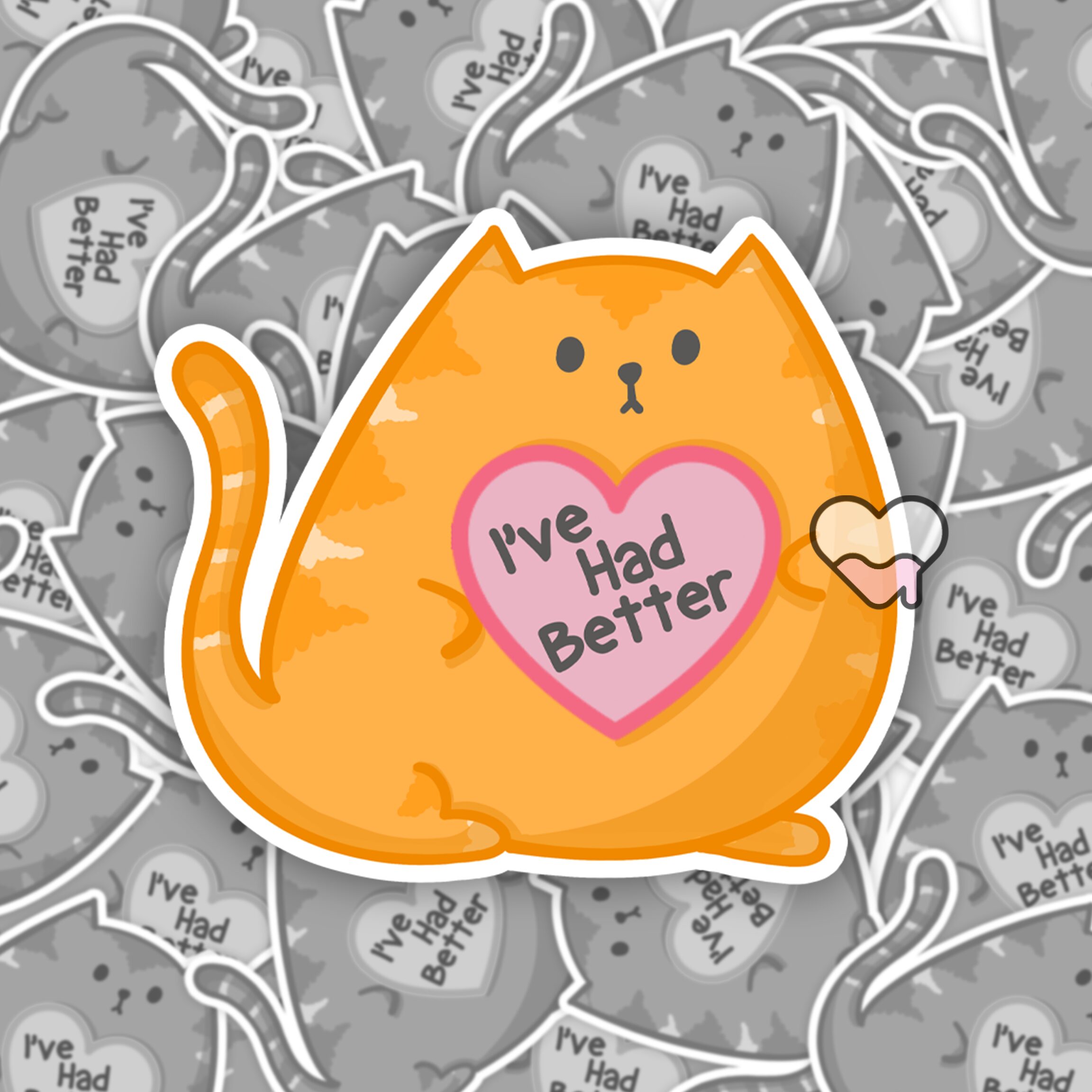 The I’ve Had Better Orange Cat Sticker is the perfect blend of sass, humor, and pure feline charm. Featuring a plump orange cat holding a heart with the blunt yet hilarious phrase “I’ve Had Better,” this sticker captures the unapologetic honesty that cats—and maybe you—carry so effortlessly. It’s the kind of design that speaks volumes without trying too hard, making it the ideal companion for those who prefer their affection sprinkled with sarcasm. 🐱