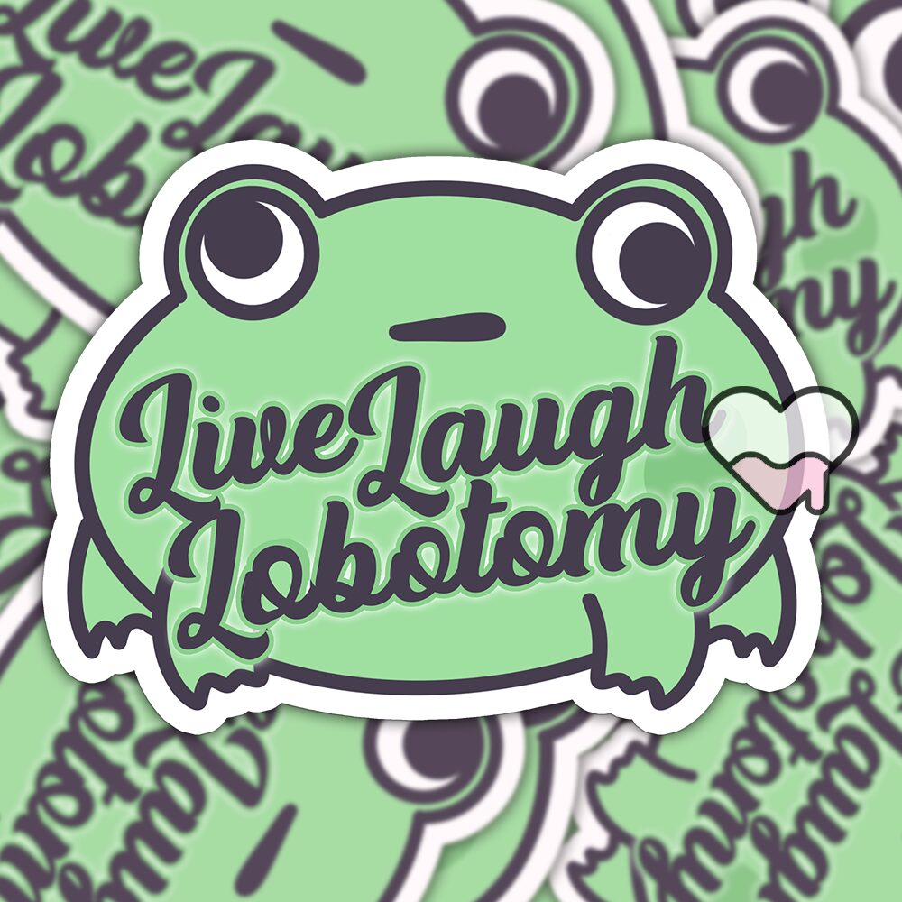 The Live Laugh Lobotomy Sticker is here to bring a perfect blend of chaotic humor and absurd cuteness into your life. Featuring an adorably wide-eyed frog with a hilariously offbeat expression, paired with the phrase “Live Laugh Lobotomy,” this design is the kind of sticker that makes you chuckle every time you see it. It’s a playful parody of the well-known “Live Laugh Love” phrase, but with a delightfully strange and surreal twist that captures the mood of anyone who’s ever felt a little unhinged but still wants to keep things lighthearted. 🐸