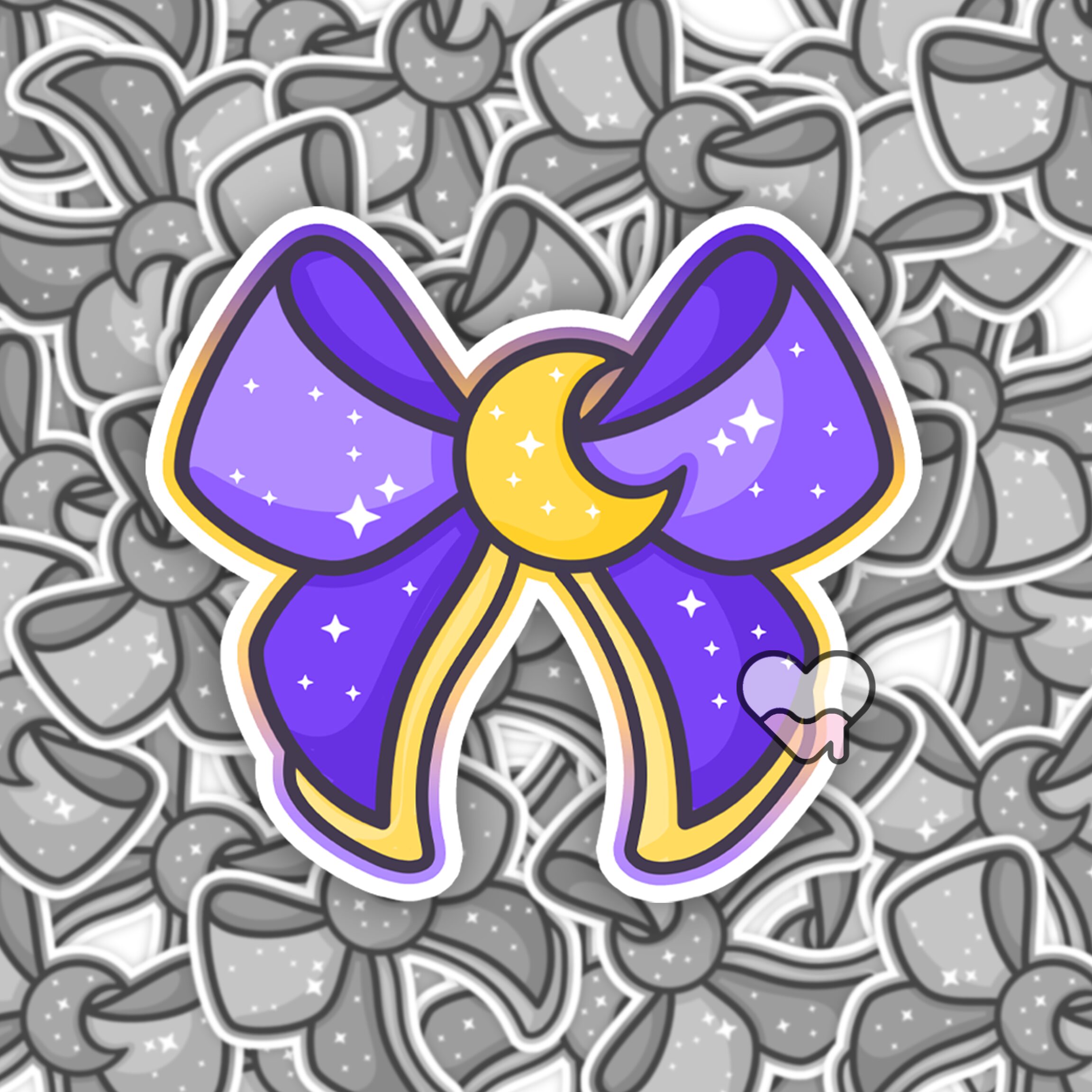 The Magical Girl Moon Bow Sticker is a dreamy, enchanting design that brings together the charm of magical girl aesthetics with celestial beauty. At its center sits a radiant golden moon, glowing softly against the deep purple tones of the bow, creating the perfect balance of elegance and whimsy. This sticker feels like something straight out of an anime transformation sequence, where power, hope, and magic converge into one sparkling emblem 🌙.