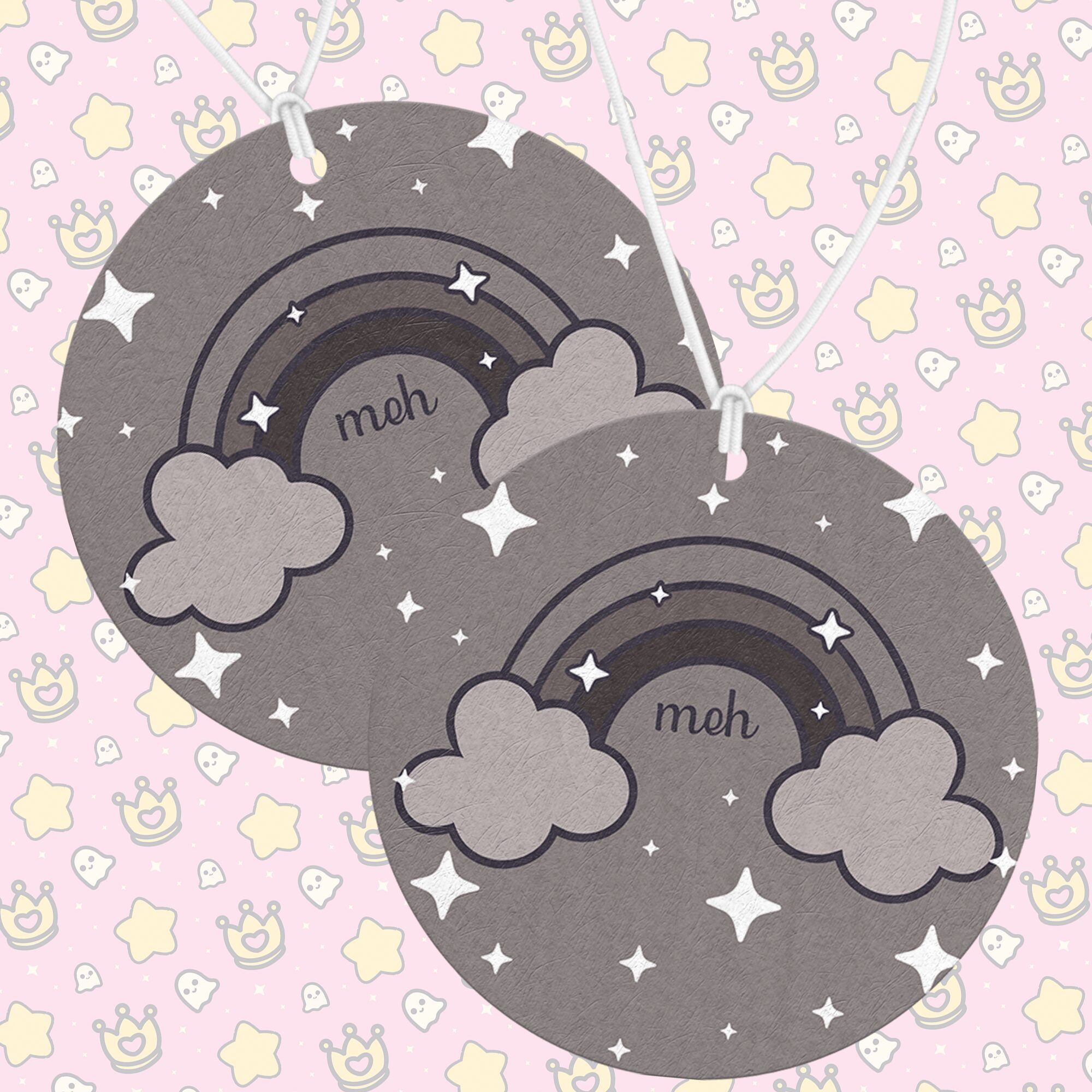 This double sided air freshener ensures the grayscale rainbow and its deadpan message are visible from all angles, making it a constant little mood marker wherever you hang it. Whether you keep it in your car, your workspace, or your room, it serves as a daily reminder that not every day has to be full of glitter and sunshine—sometimes neutral tones and honesty are the vibe. There’s a charm in embracing “meh,” and this design celebrates that feeling with both wit and style.