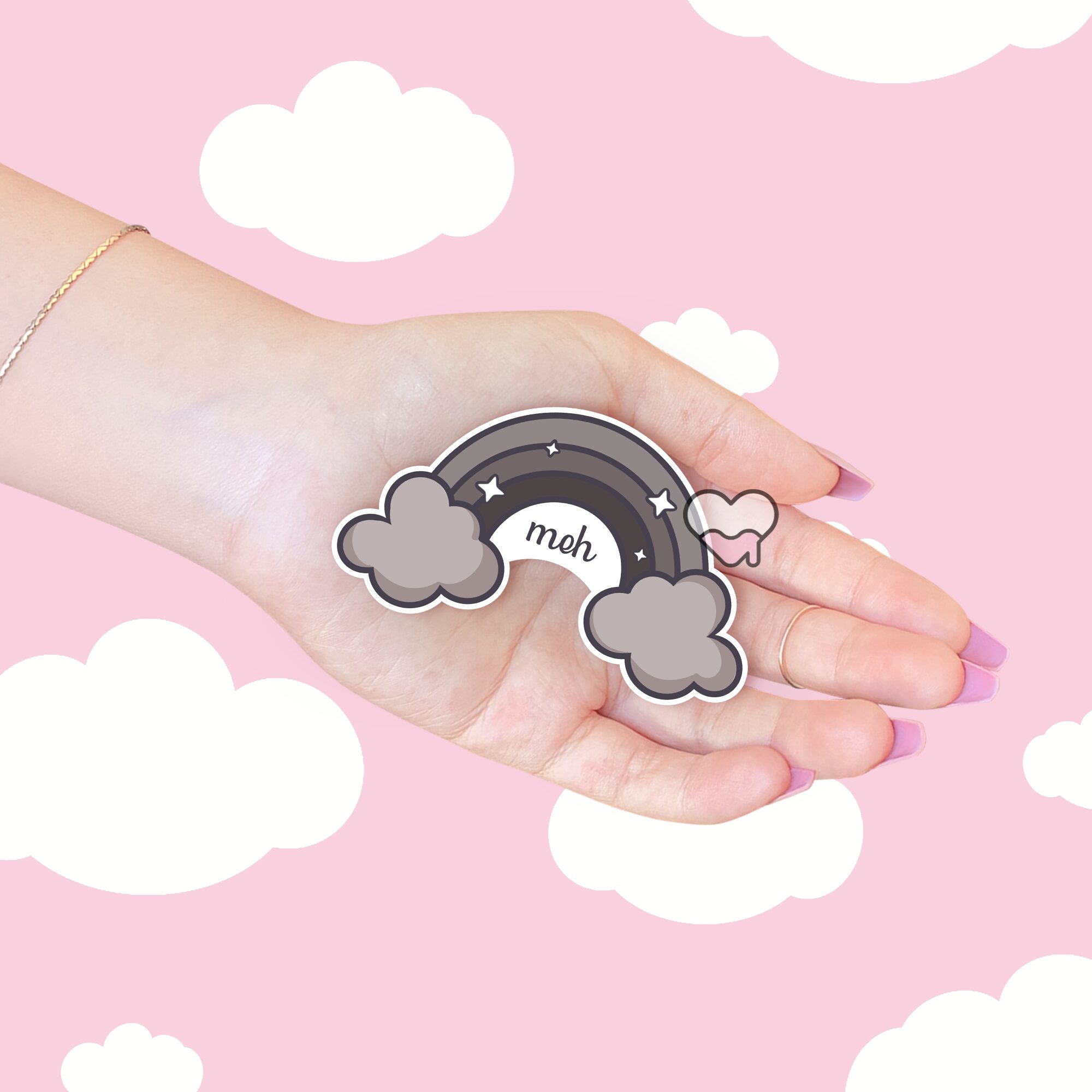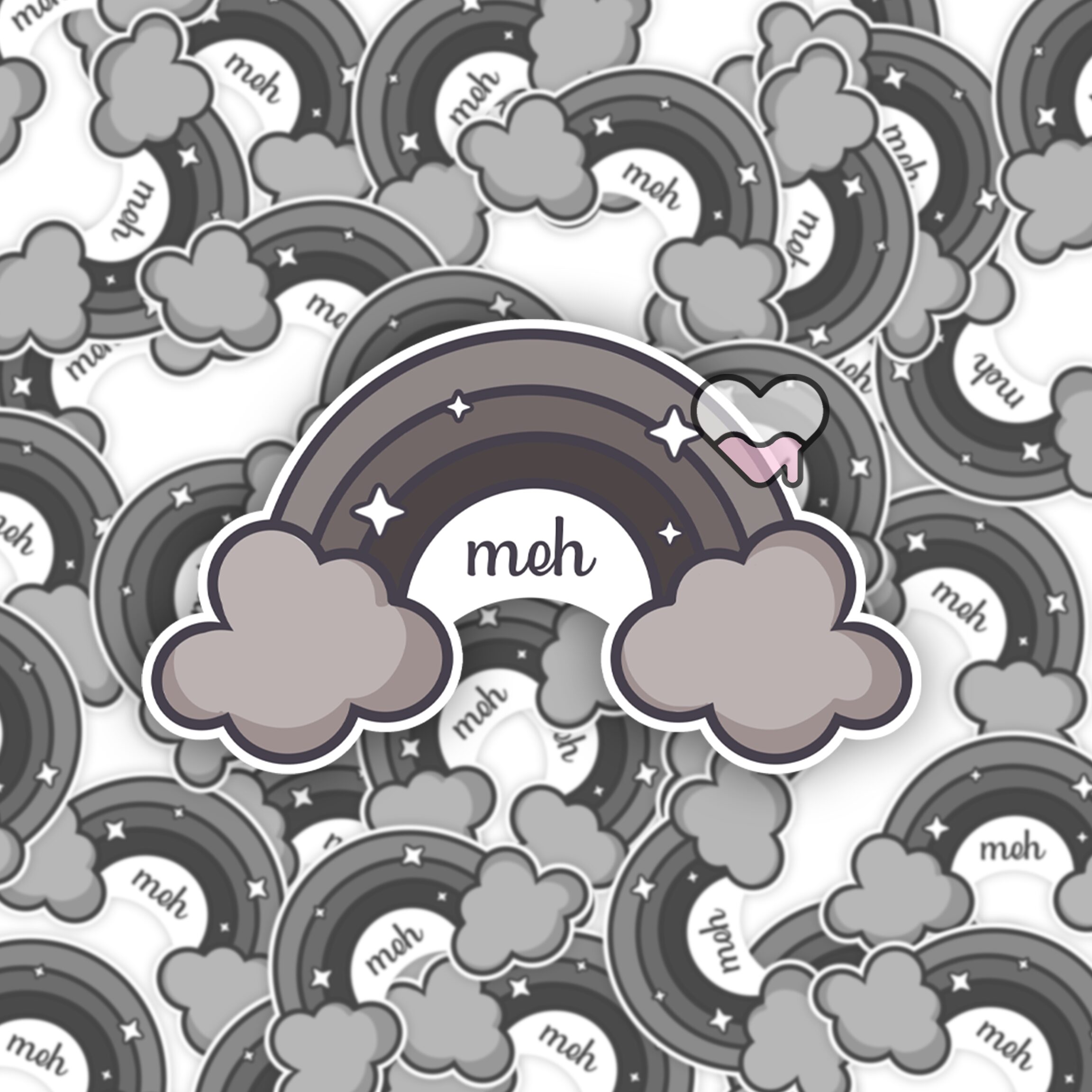 The Meh Rainbow Sticker is here for those days when even rainbows can’t quite brighten your mood. Instead of the usual burst of color, this design takes a refreshingly different approach with a grayscale rainbow, paired with the simple yet oh-so-relatable word: “Meh.” It’s the perfect little expression of those in-between vibes—when you’re not particularly excited, not particularly down, just… existing. 🌈
