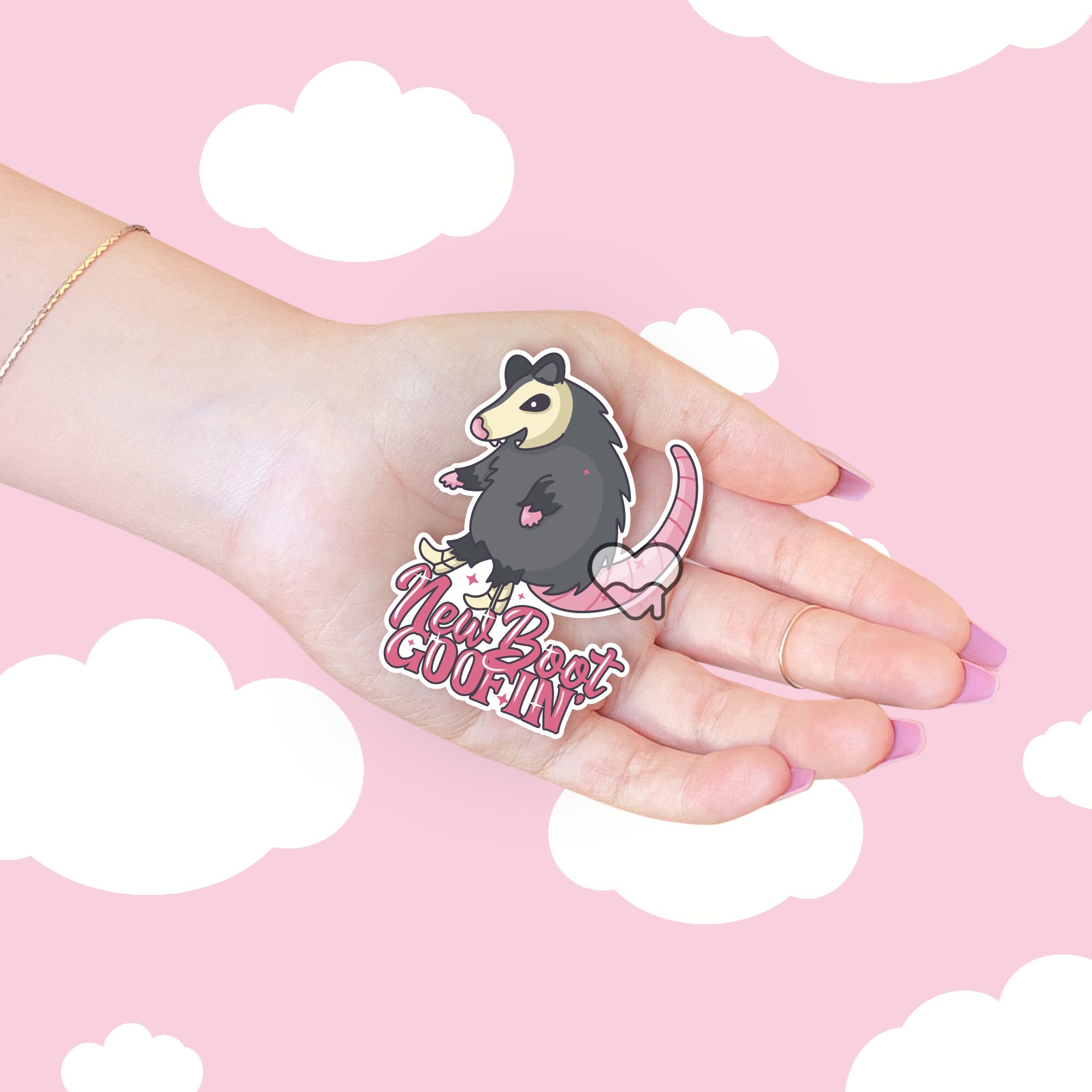 The New Boot Goofin Sticker is here to steal the show with charm, humor, and just the right amount of silliness. Featuring an adorable little possum proudly showing off its stylish boots alongside the playful phrase “New Boot Goofin,” this sticker is a joyful tribute to embracing your quirky side. It captures the excitement of putting on a brand-new pair of shoes and strutting around like the world is your runway—except in this case, the star of the show is a sweet little possum who’s just too cute to resist. 🐾