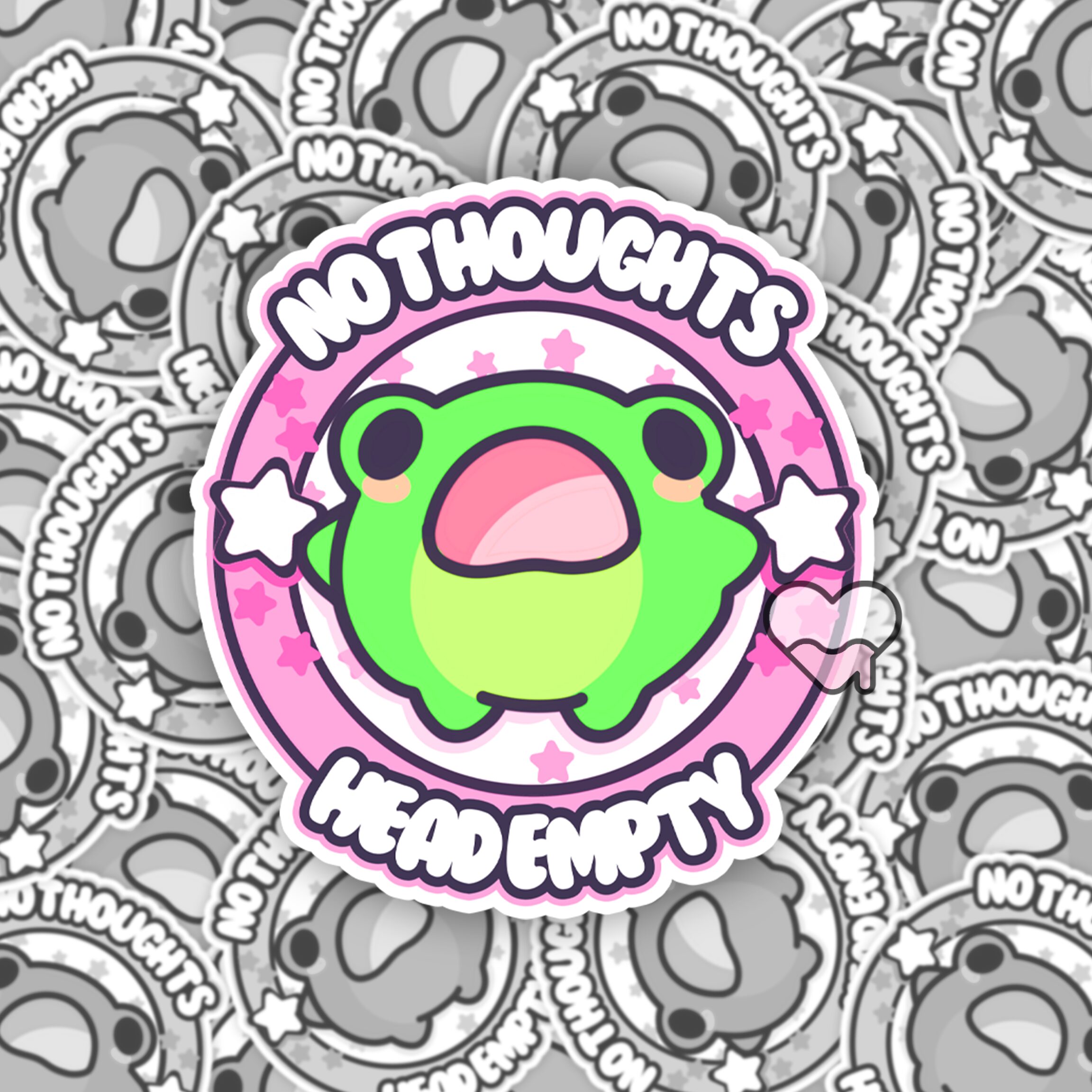 The No Thoughts Head Empty Frog Sticker is a hilariously adorable way to capture the feeling of letting your brain take a break. Featuring a wide-eyed, dopey little frog and the phrase “No Thoughts Head Empty,” this design is all about celebrating those blissfully blank moments where you’re not overthinking or stressing—you’re just existing, and that’s perfectly fine. 🐸