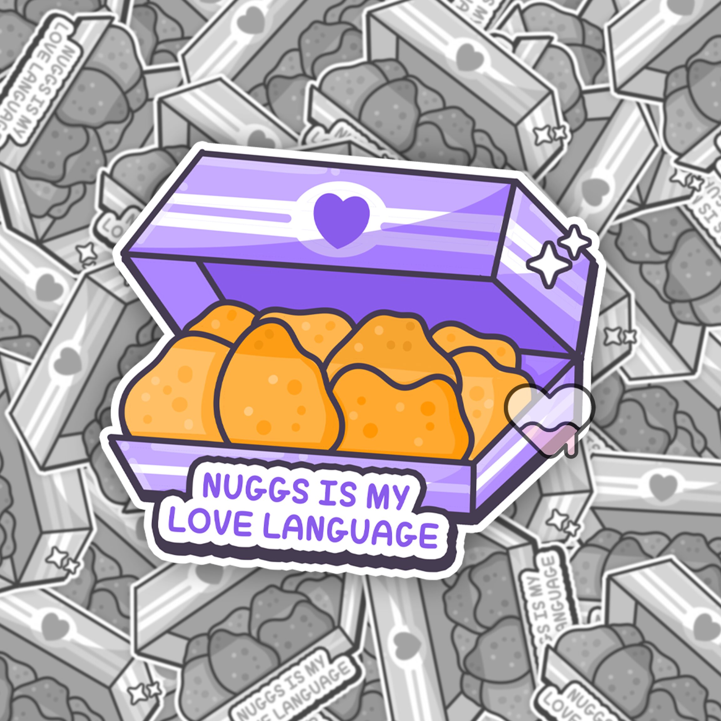 The Nuggs Is My Love Language Sticker is a delightful little tribute to one of life’s most comforting joys: a box of golden, crispy nuggets. Featuring a playful design with a cute purple box overflowing with nuggs and the phrase “Nuggs Is My Love Language,” this sticker captures the warm, funny, and oh-so-relatable feeling of expressing love through food. Whether you’re the type of person who dreams about nuggets at midnight or you just appreciate the humor of food-themed art, this sticker will instantly bring a smile to your face. 🍗