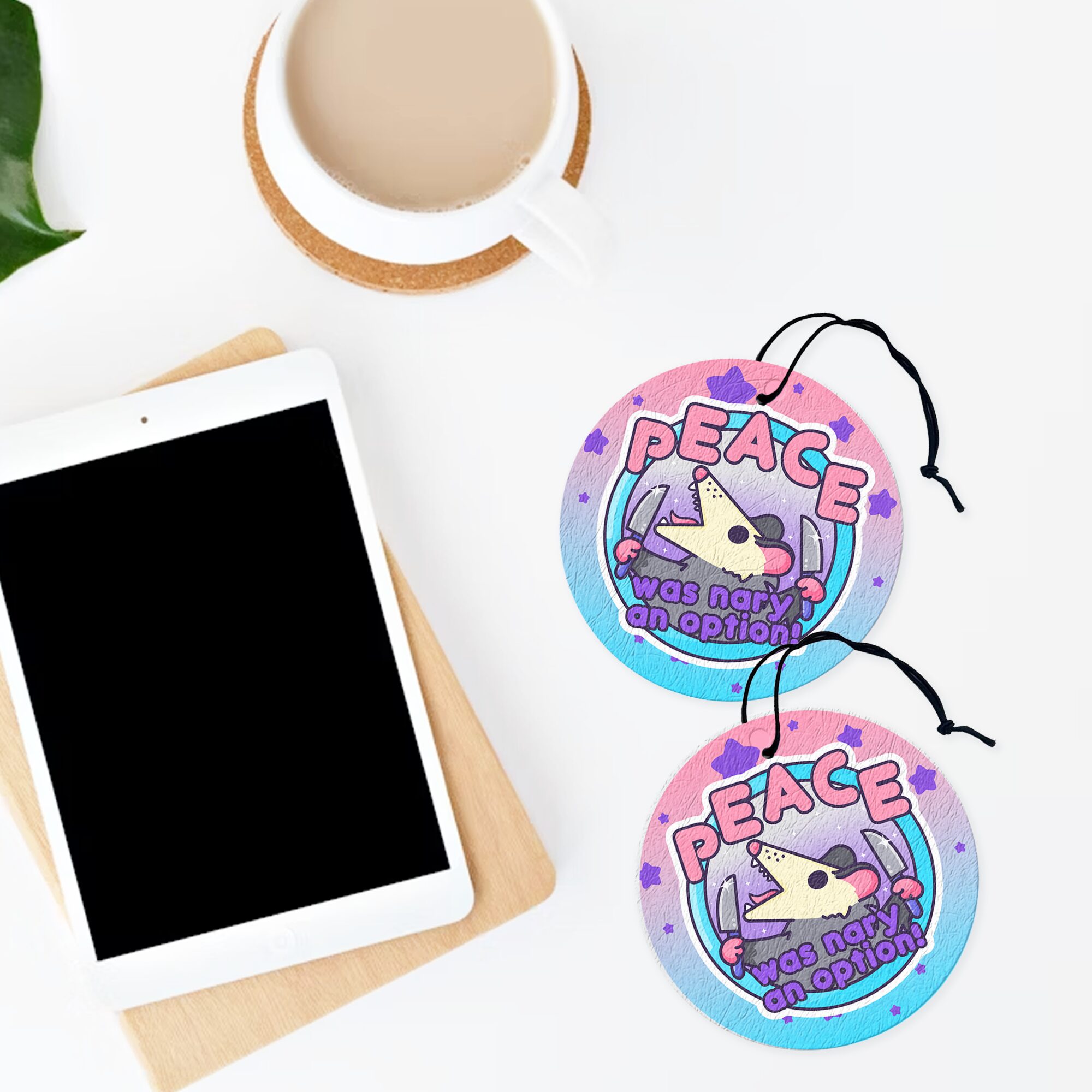 More than just a decorative piece, the “Peace Was Nary An Option Air Freshener” brings a mix of personality, humor, and charm into your environment. It’s a reminder that even in chaos, there’s a little room for fun, laughter, and embracing the unexpected. Let this little possum’s spirited energy brighten your day and bring a playful sense of rebellion wherever it hangs. 😈✨