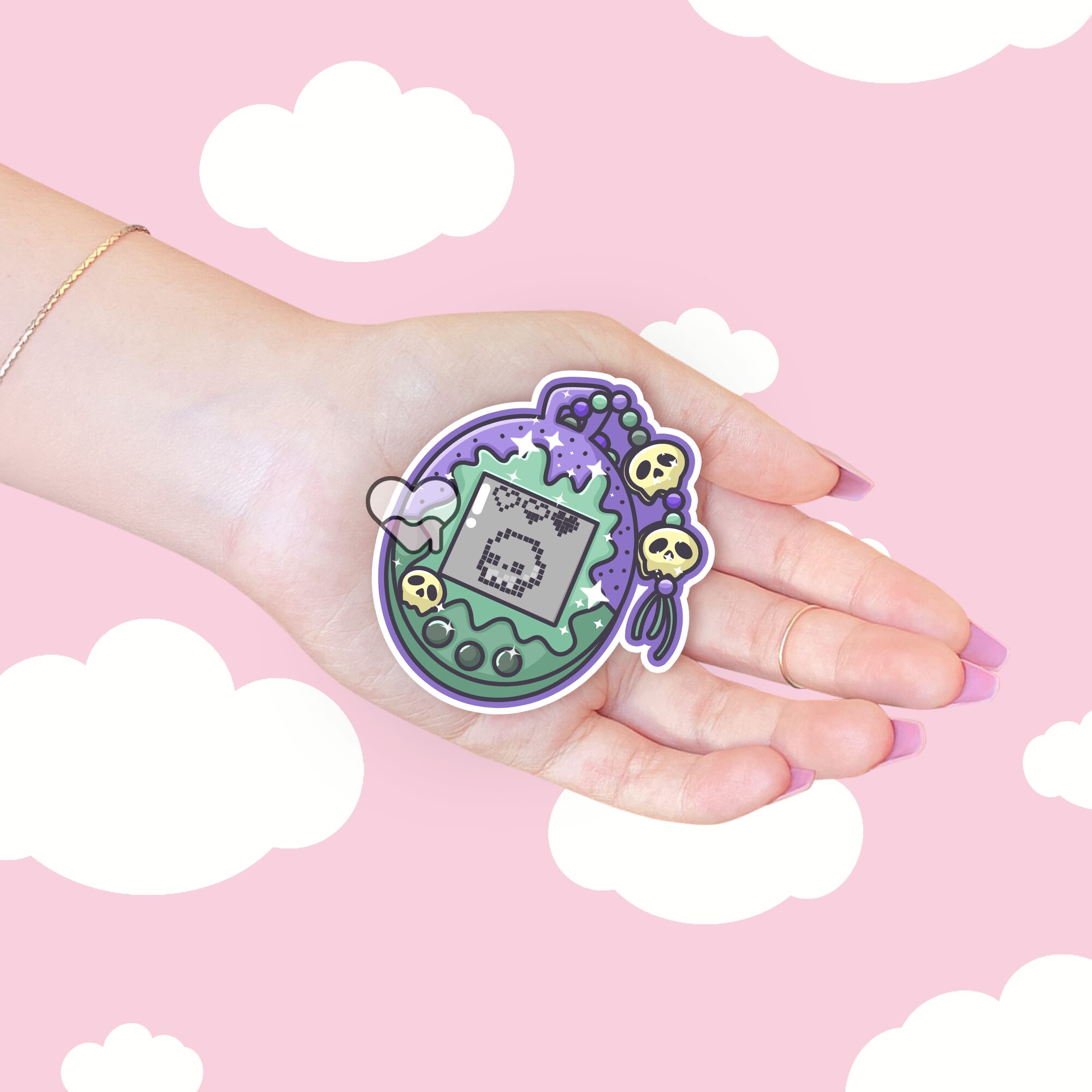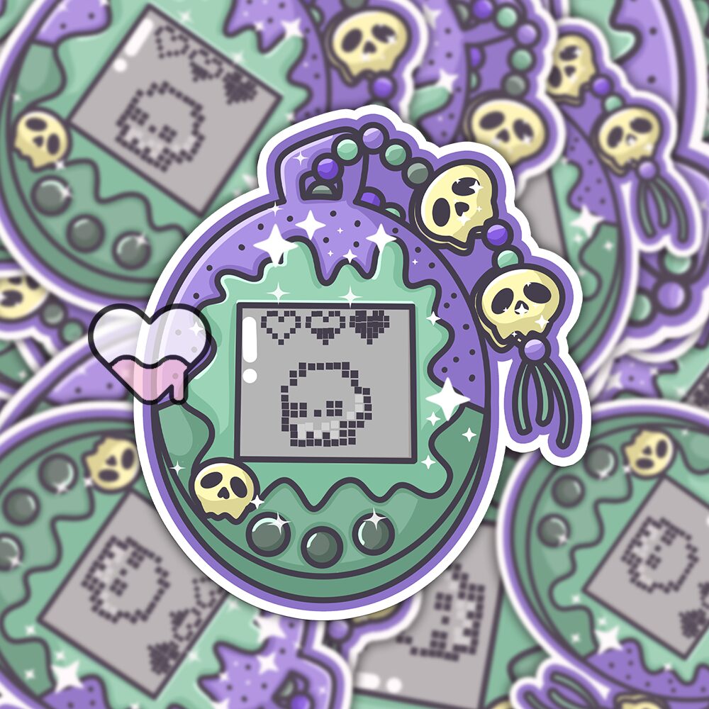 The Pet Skull Game Sticker takes retro gaming vibes and gives them a bold, spooky-cute twist. Designed to look like a classic handheld pet game, this sticker swaps out the usual furry friends for a pixelated little skull that’s full of quirky charm. It’s playful, a little eerie, and totally unique, making it the perfect design for anyone who loves mixing nostalgia with a touch of the macabre. The skull character sits right in the center of the “screen,” looking both adorable and cheeky, as if it’s ready to be your loyal little pixel companion. 💀