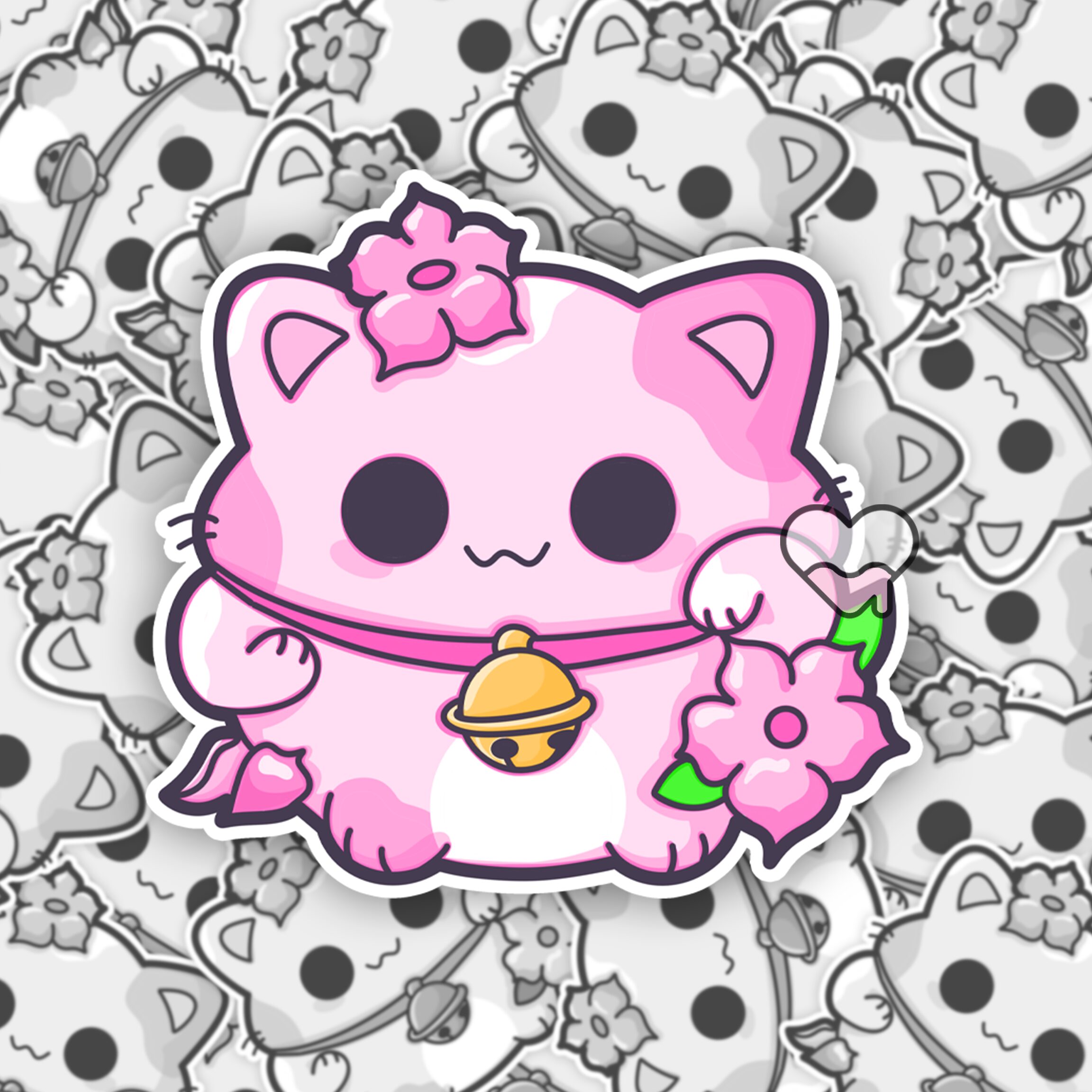 Pink Lotus Lucky Cat Sticker Details❤️