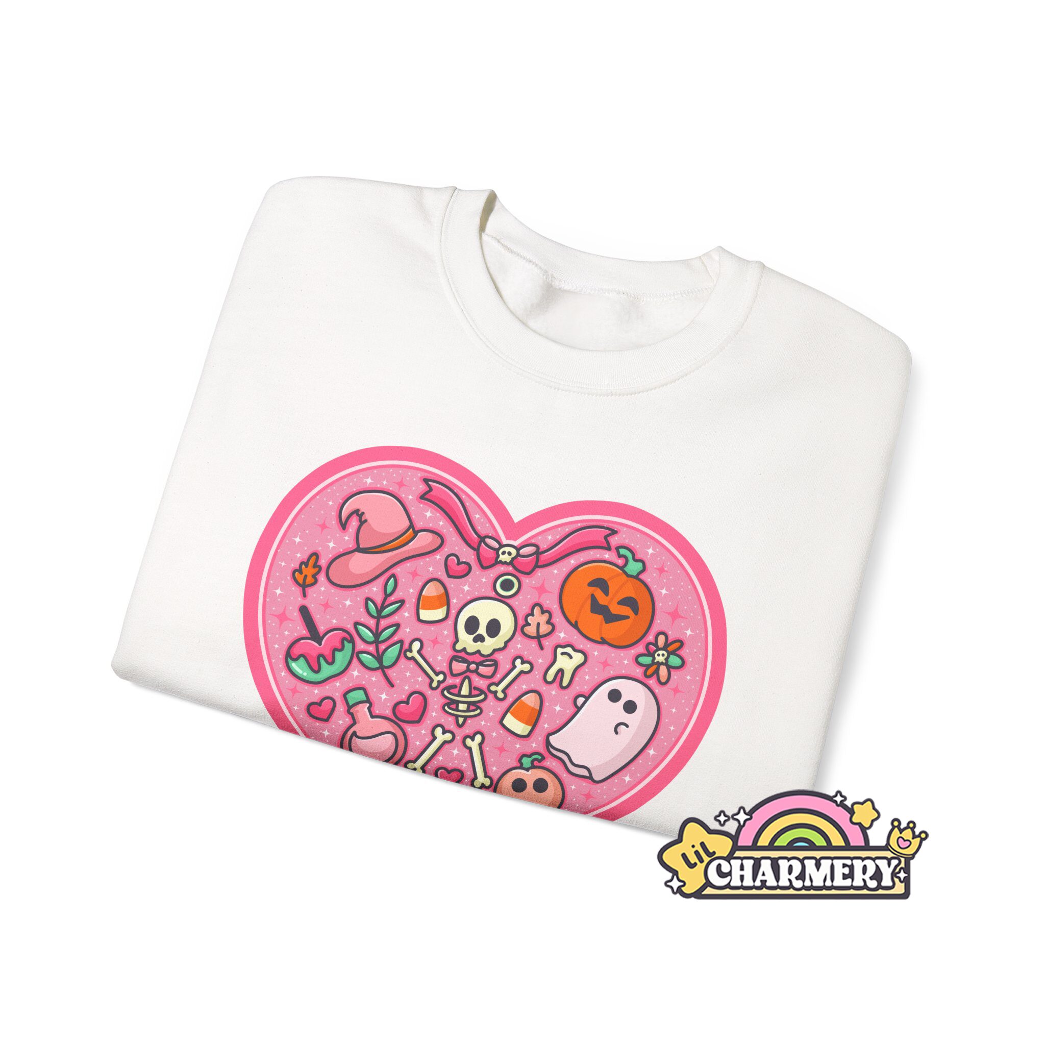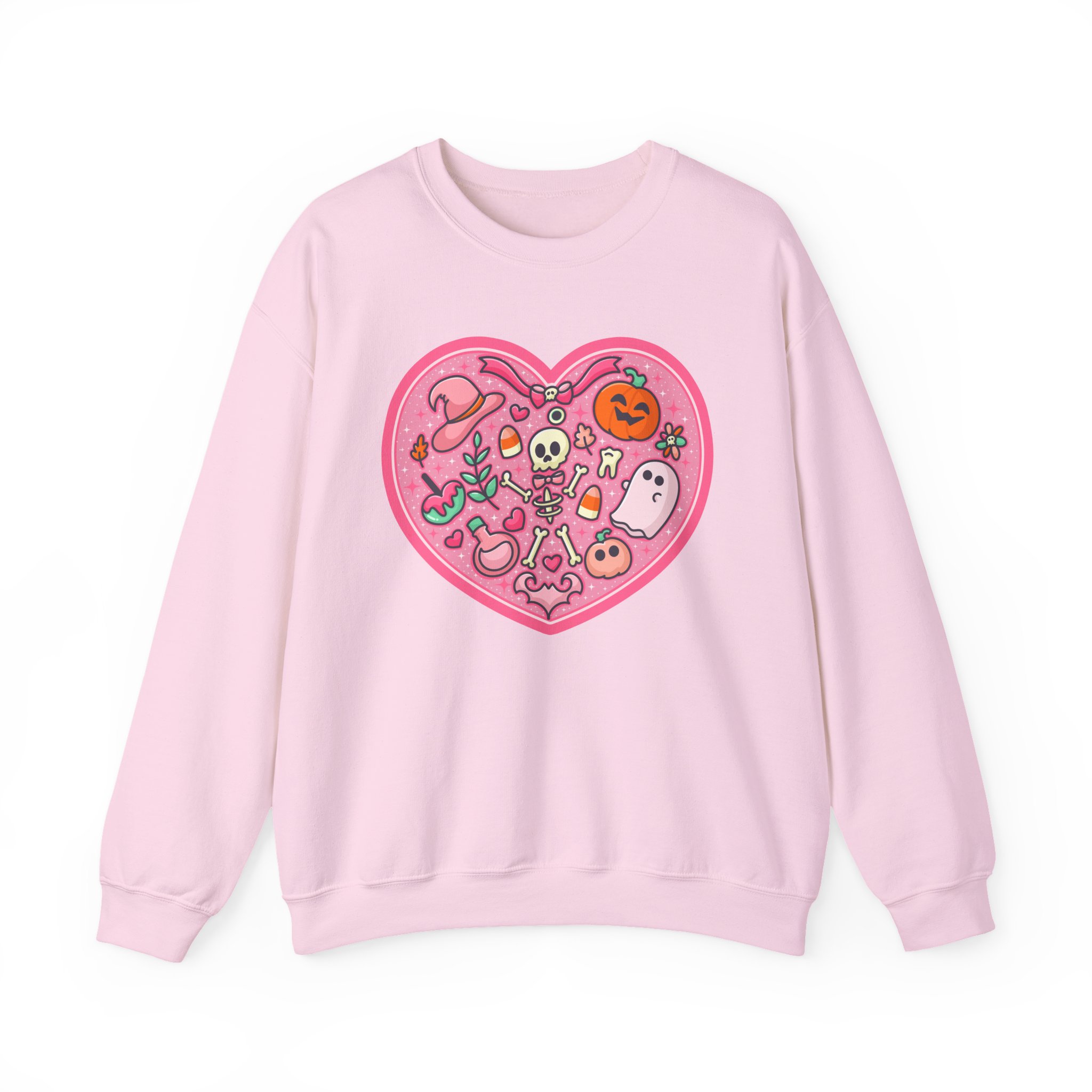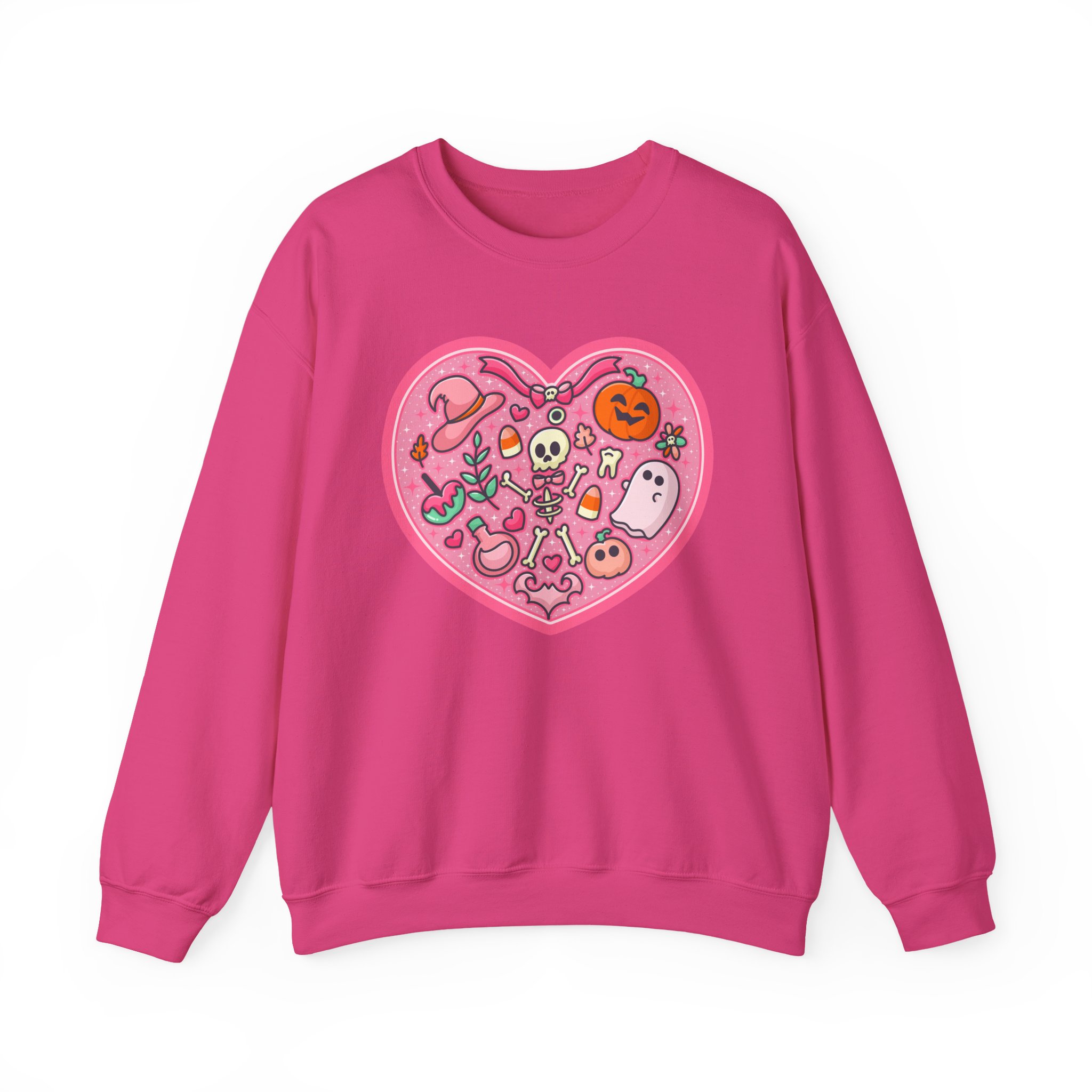 The Pink Skeleton Heart Sweatshirt is the perfect blend of spooky charm and playful cuteness, designed for anyone who loves Halloween with a whimsical twist. Featuring a vibrant pink heart filled with a friendly skeleton, floating ghosts, and tiny pumpkins, this sweatshirt captures the fun and magic of the season in one eye-catching design. The contrast of bright pink with classic Halloween imagery makes it a standout piece that’s equal parts eerie and adorable. Whether you’re heading to a fall festival, trick-or-treating, or cozying up at home with seasonal treats, this sweatshirt brings charm and comfort to every autumn activity 💀🎃.