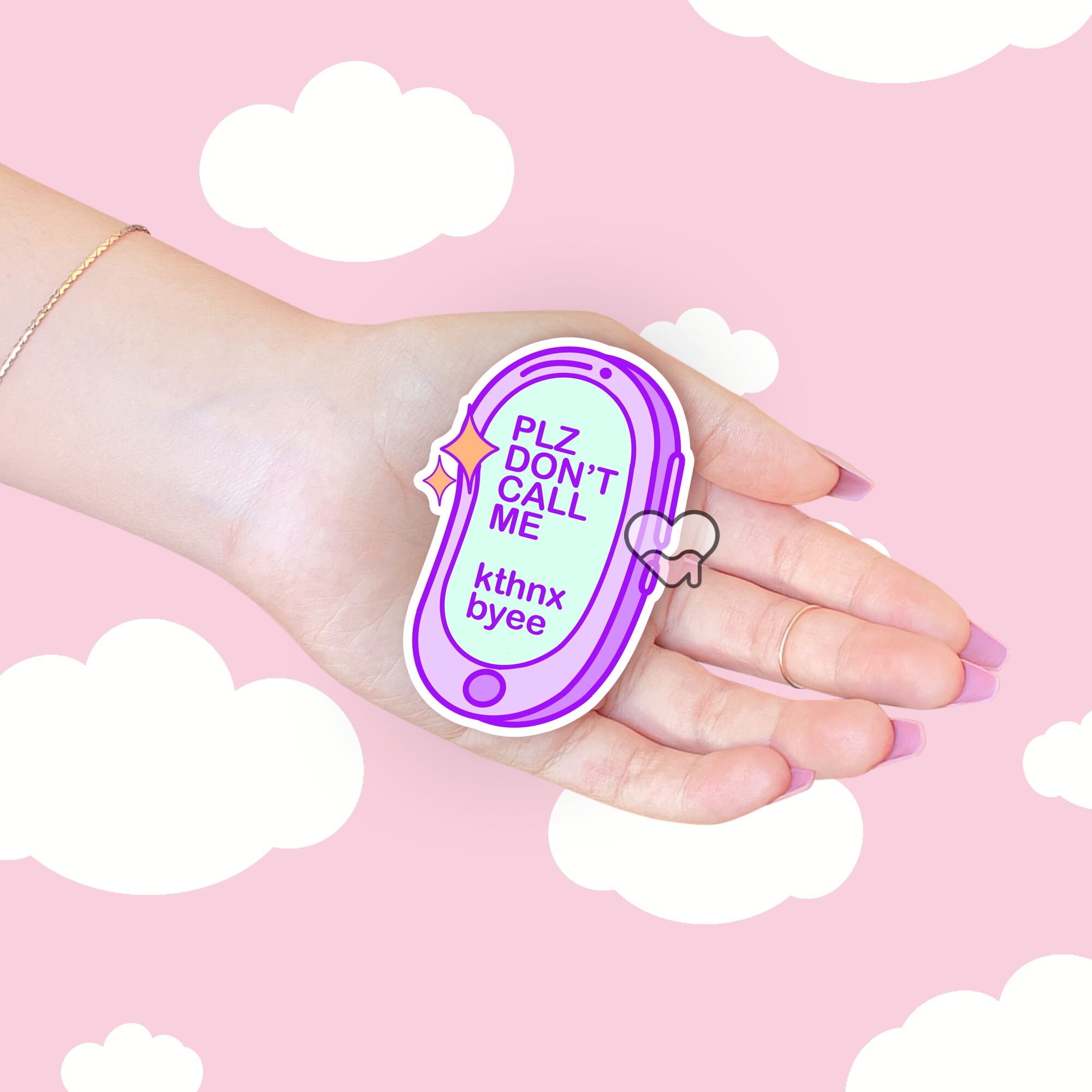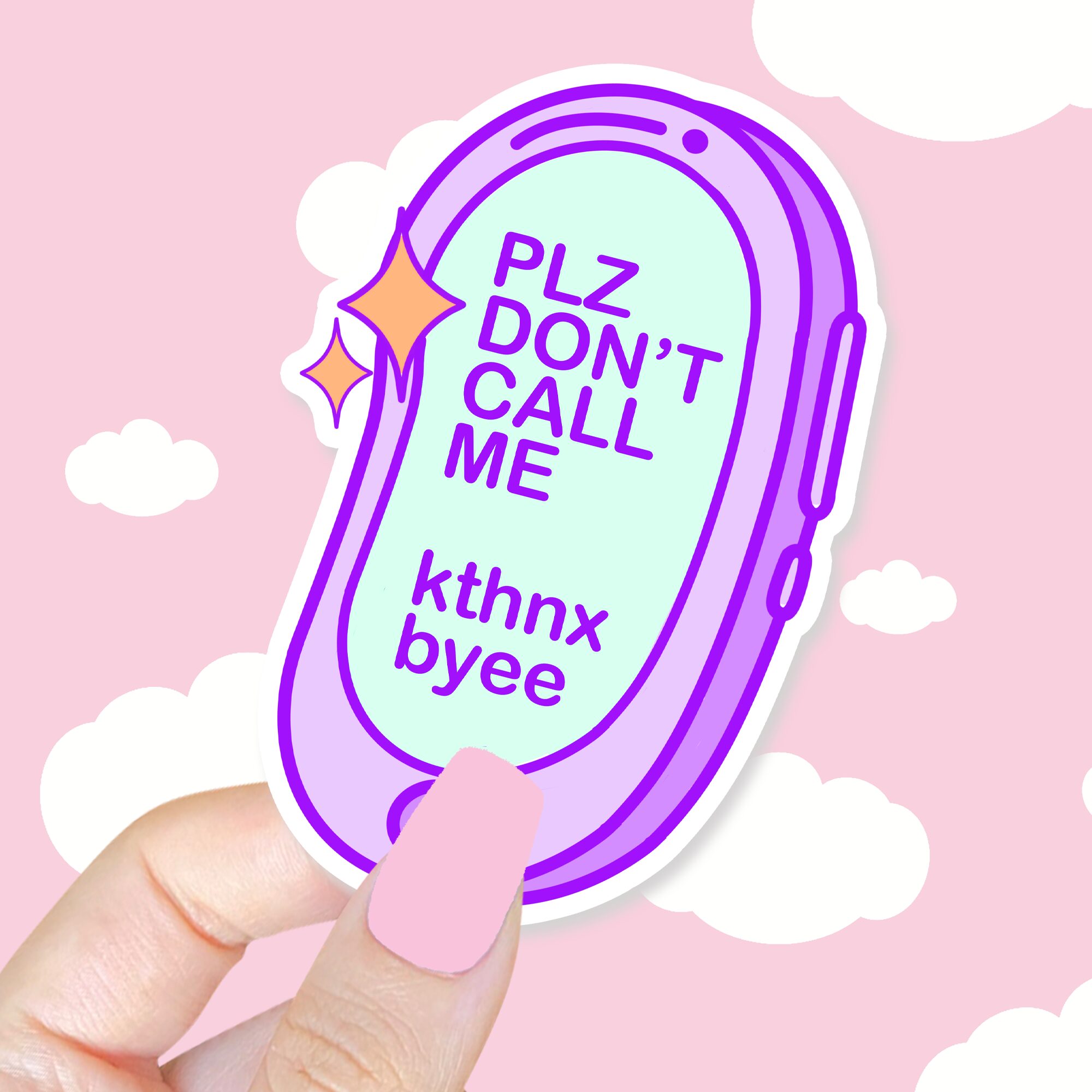 The Please Don’t Call Me Purple Sticker is a playful little reminder that sometimes, peace and quiet are all we need. Featuring a retro-style cell phone in a fun purple shade, this die-cut sticker pairs nostalgic vibes with a cheeky modern message: “Please Don’t Call Me, K Thx Bye!” It’s the perfect mix of sassy and cute, making it a great addition for anyone who loves a bit of humor in their everyday accessories 📱✨.