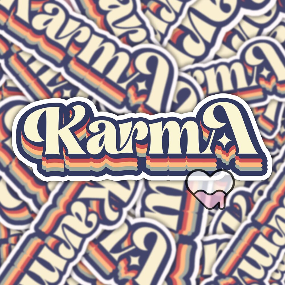The Retro Karma Sticker is a bold yet playful way to showcase the timeless idea that what goes around comes around. Featuring the word “Karma” in vibrant retro rainbow colors, this sticker instantly captures attention with its striking design and nostalgic palette. The rainbow tones flow across the letters in a way that feels both vintage and lively, giving it that unmistakable 70s-inspired vibe while still keeping it fresh and modern. With its mix of color and meaning, it’s the perfect little reminder that energy—whether good or bad—always finds its way back. 🌈