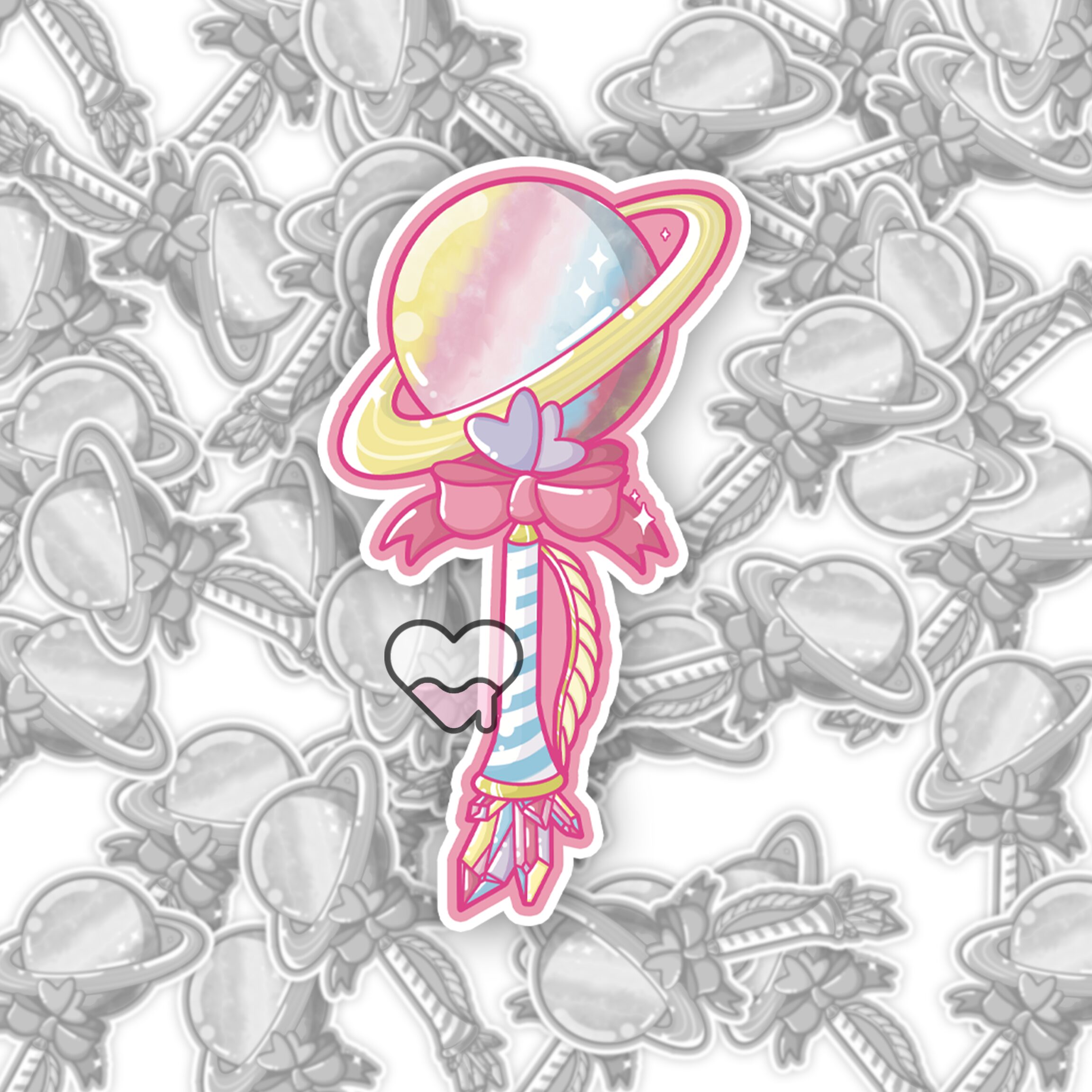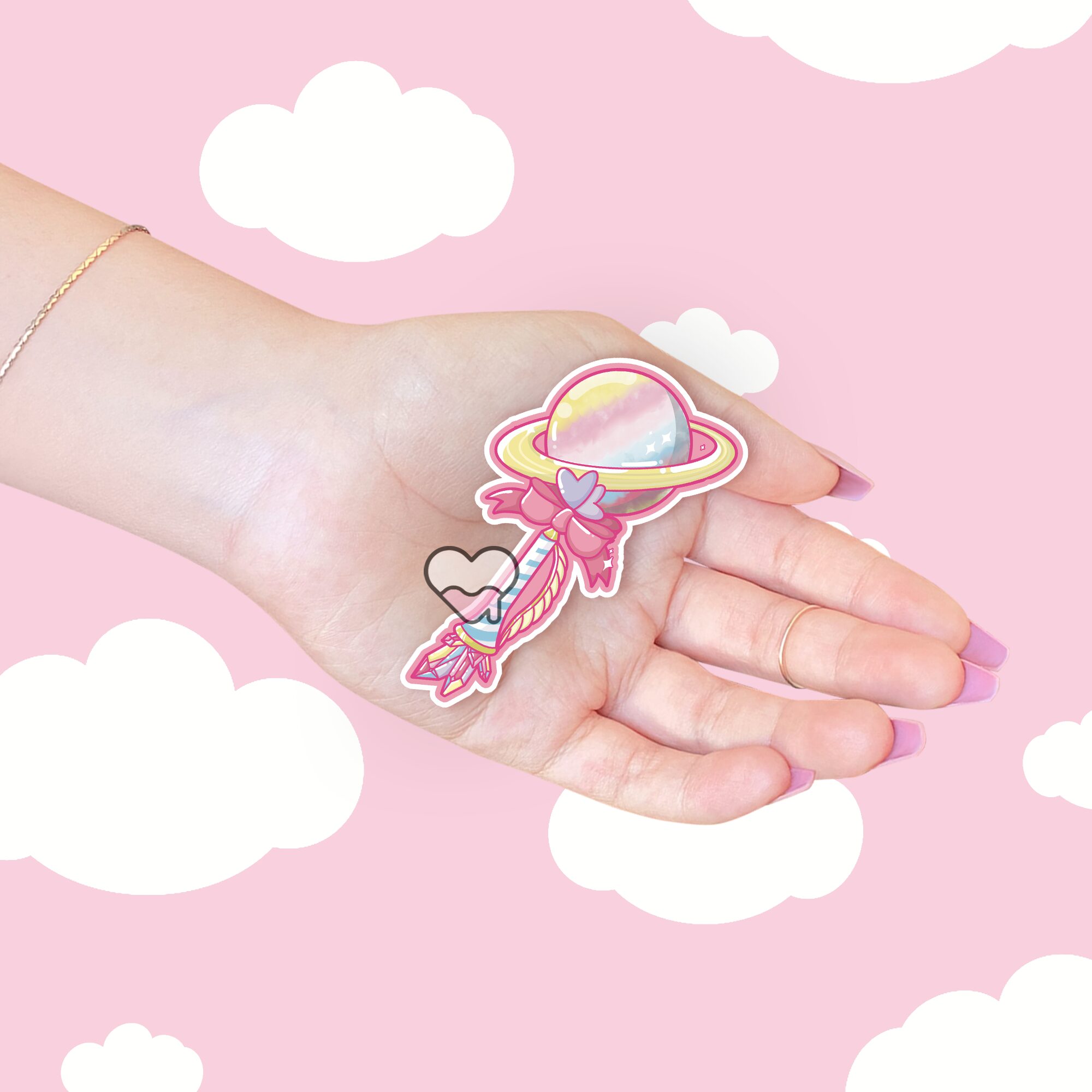 The Saturn Wand Sticker is a dreamy little piece of magic, perfect for anyone who loves the enchanting mix of pastel tones, celestial vibes, and just the right touch of whimsy. This design features a delicate pink wand crowned with the planet Saturn, its rings gracefully circling the top like a cosmic halo. It’s the kind of design that feels straight out of a magical girl universe, where every accessory carries stardust and every detail sparkles with possibility. ✨