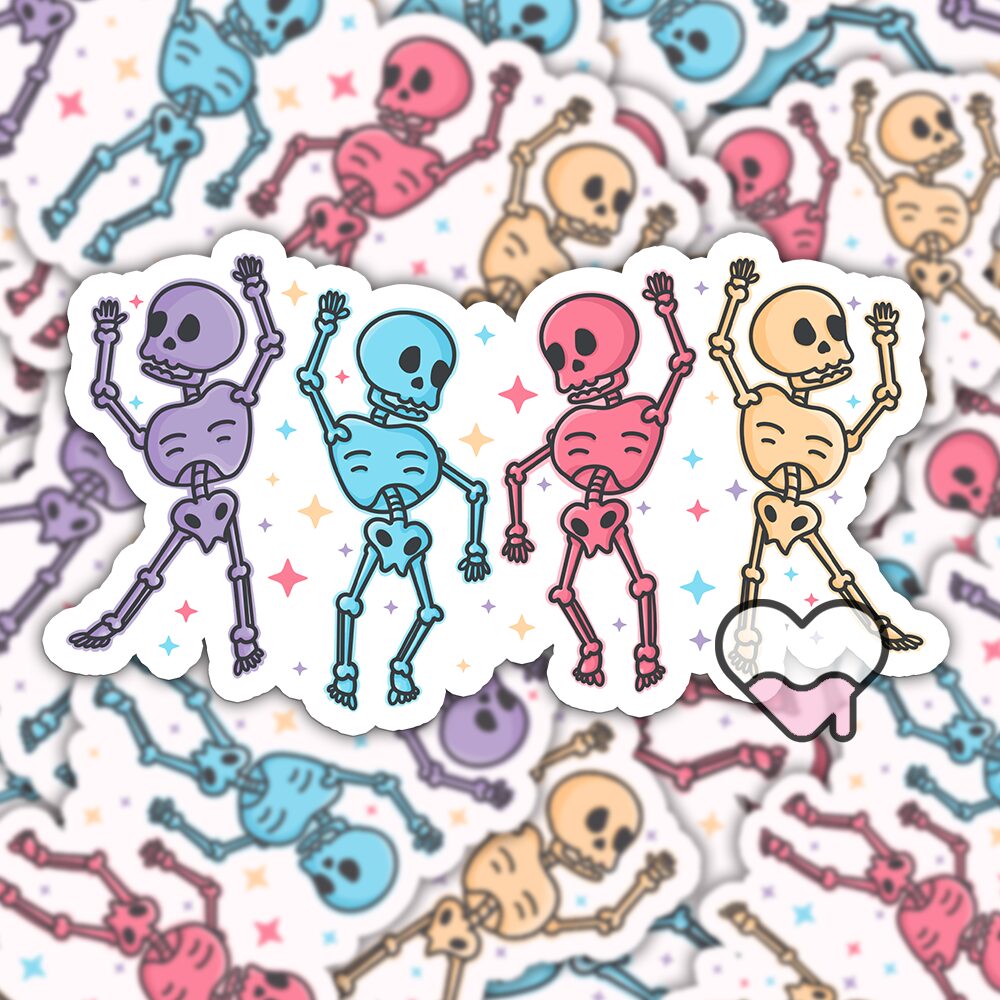 The Skeleton Dance Party Sticker is here to bring a burst of playful energy and a whole lot of personality wherever it goes. Featuring four brightly colored skeletons mid-groove, this sticker radiates fun, whimsy, and a carefree spirit. Each skeleton has its own pose, making it look like they’re caught in the middle of their own little dance battle, arms and legs moving with wild abandon. 🎶