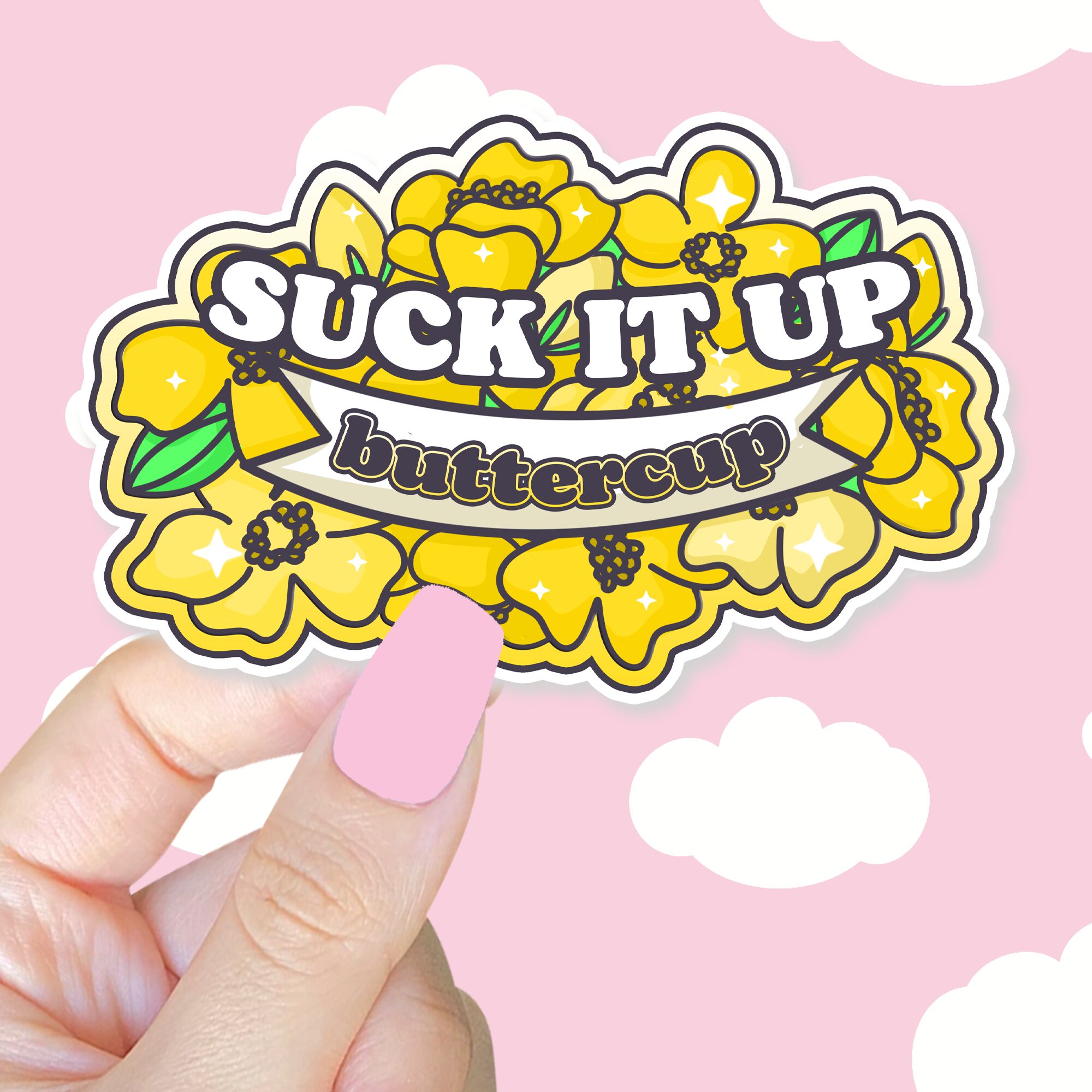 The Suck It Up Buttercup Sticker is a perfect mix of sweet floral charm and sharp wit, making it a fun way to add personality and humor to your everyday items. Featuring a beautiful bunch of bright yellow buttercup flowers alongside the bold phrase “Suck It Up Buttercup,” this design strikes a balance between delicate beauty and playful sass. It’s the kind of sticker that makes people smile the moment they see it, delivering a dose of humor wrapped in pretty petals. 🌼