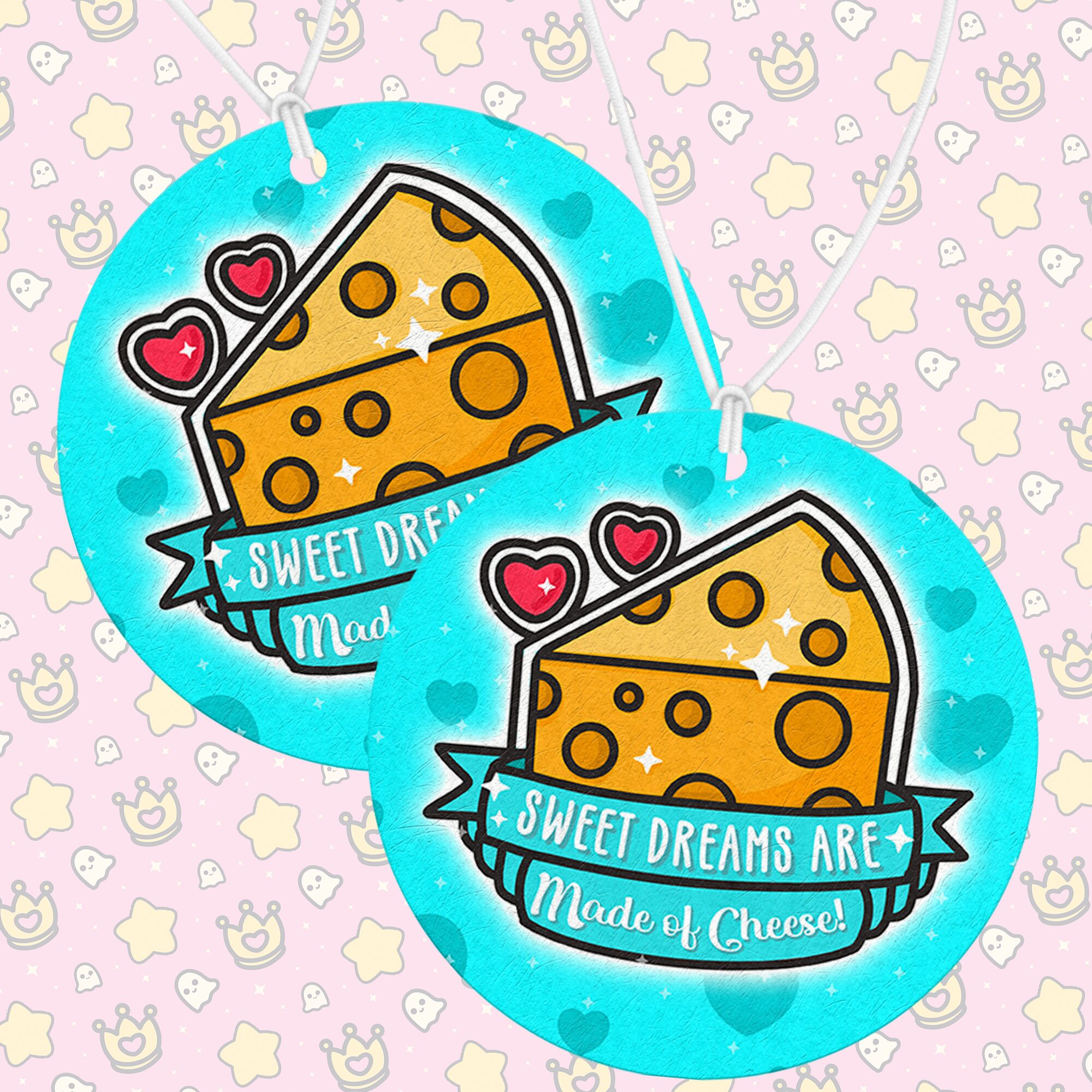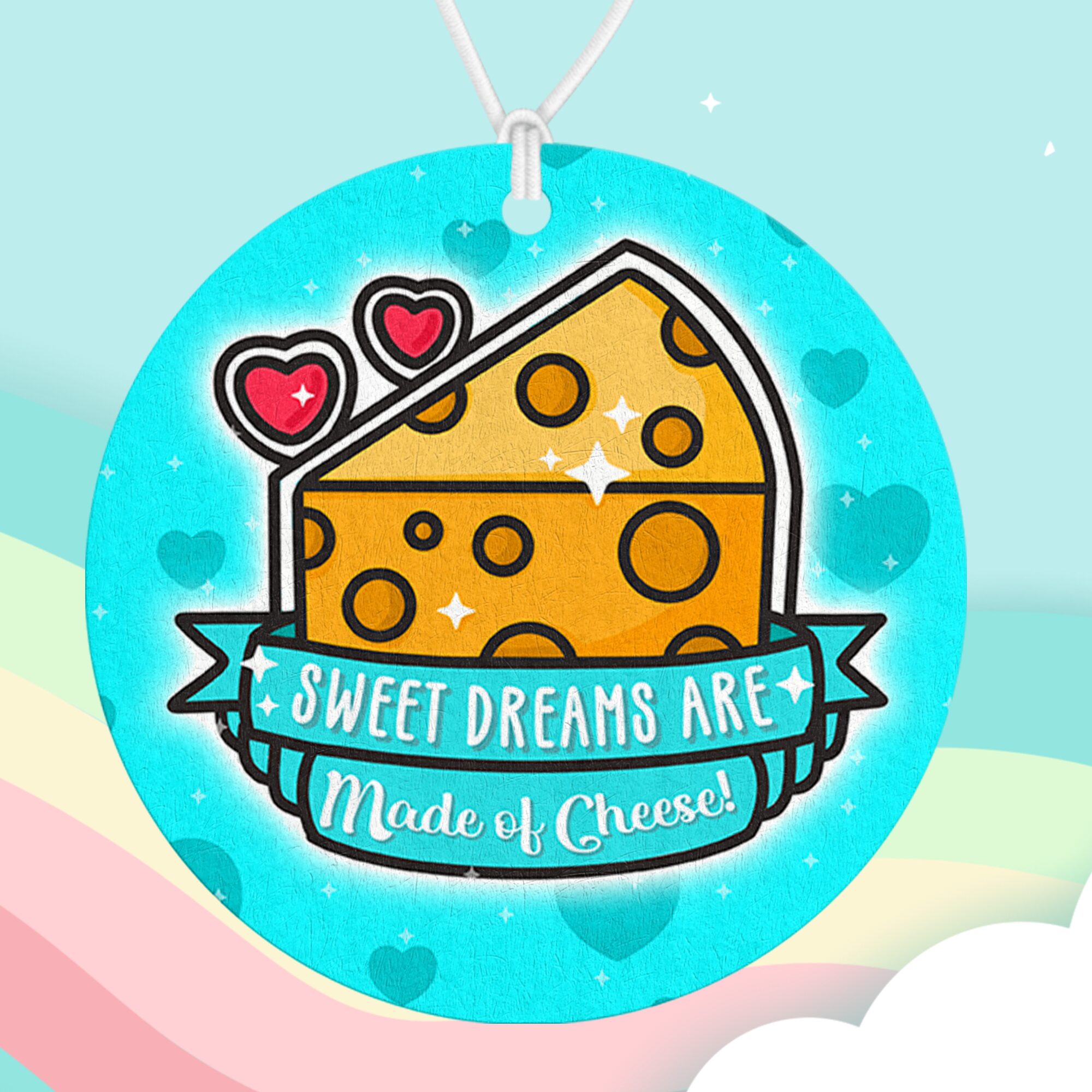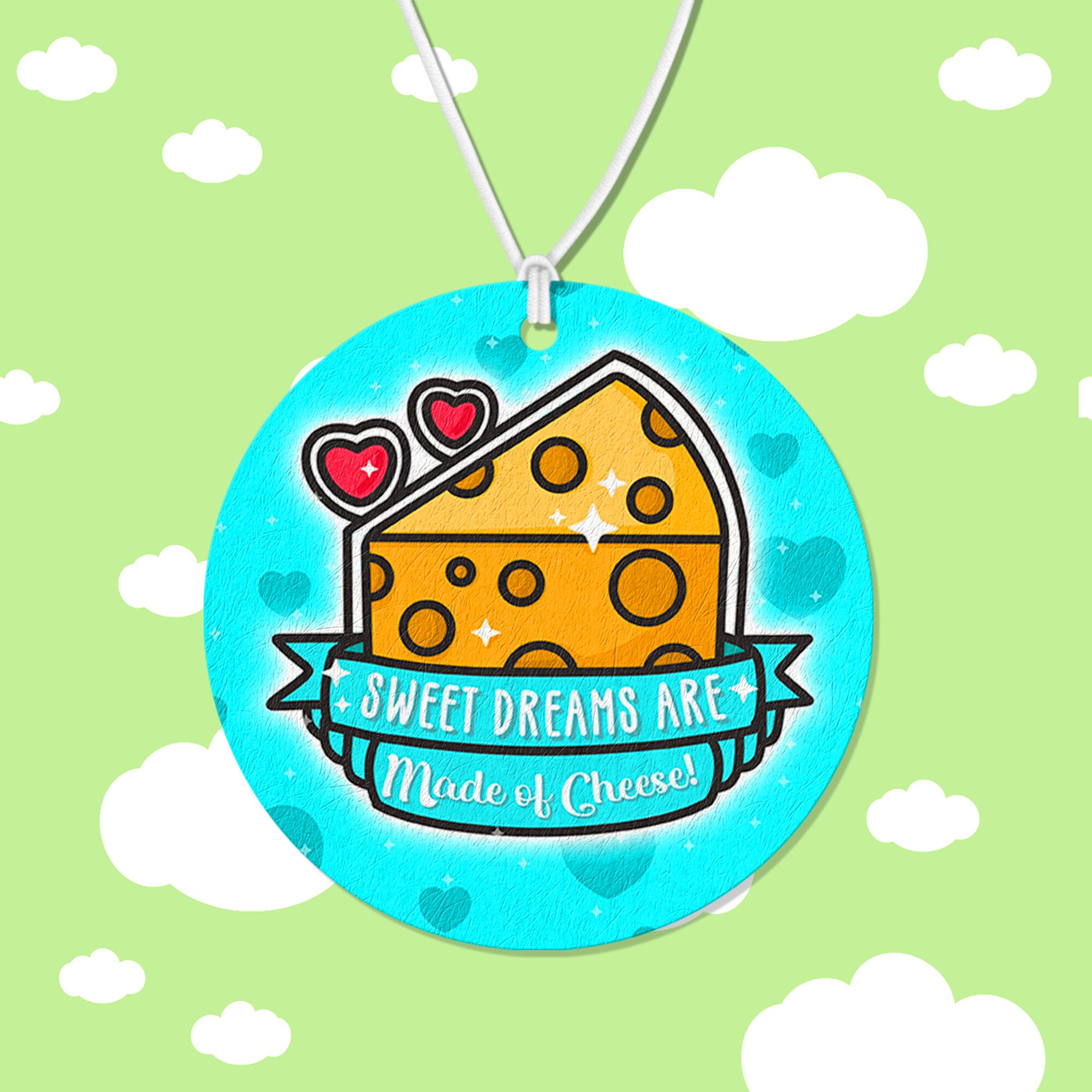 The “Sweet Dreams Cheese Air Freshener” is here to bring a smile to your face and a little bit of cheesy charm to your space.