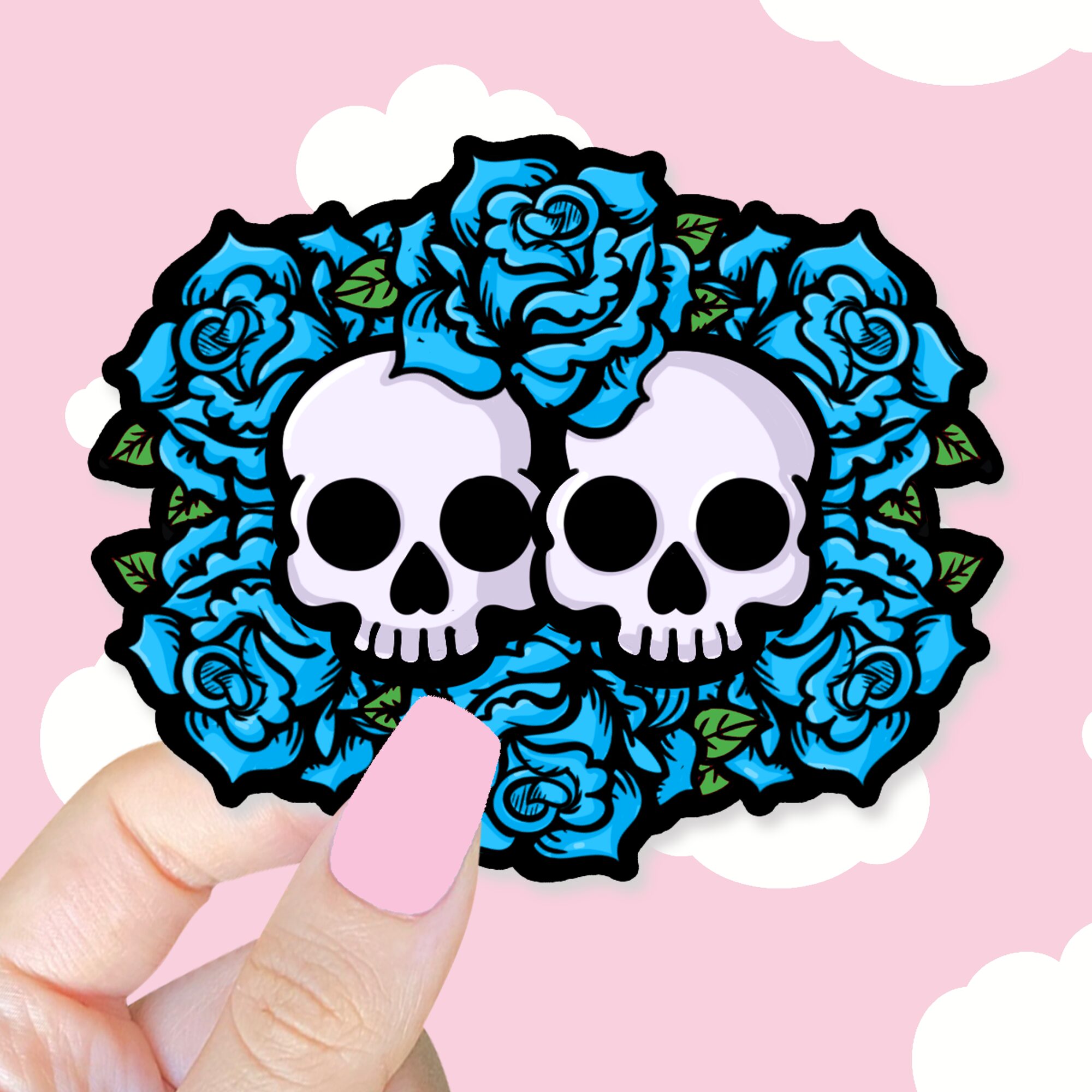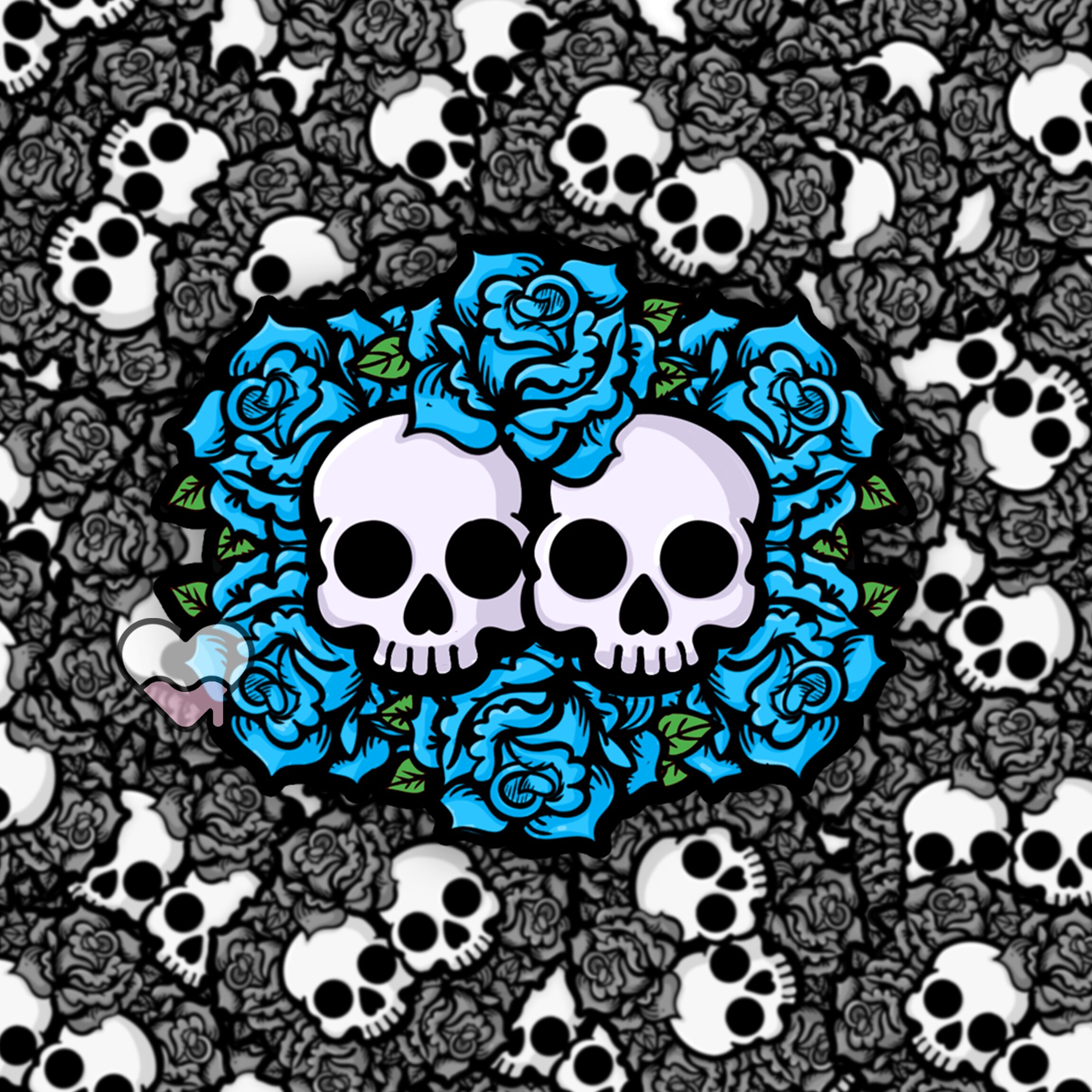 The Together In Death Blue Sticker is a striking blend of romance and gothic charm, beautifully capturing the idea of love that endures even beyond the grave. Featuring two skulls nestled closely together and surrounded by lush blue roses, this sticker conveys a hauntingly sweet message of eternal togetherness. It’s the kind of design that feels both edgy and tender, making it perfect for anyone who appreciates a balance of dark aesthetics and heartfelt symbolism. The skulls represent unity in mortality, while the roses—often a symbol of love and passion—add a soft, beautiful contrast to the design. 🌹💀