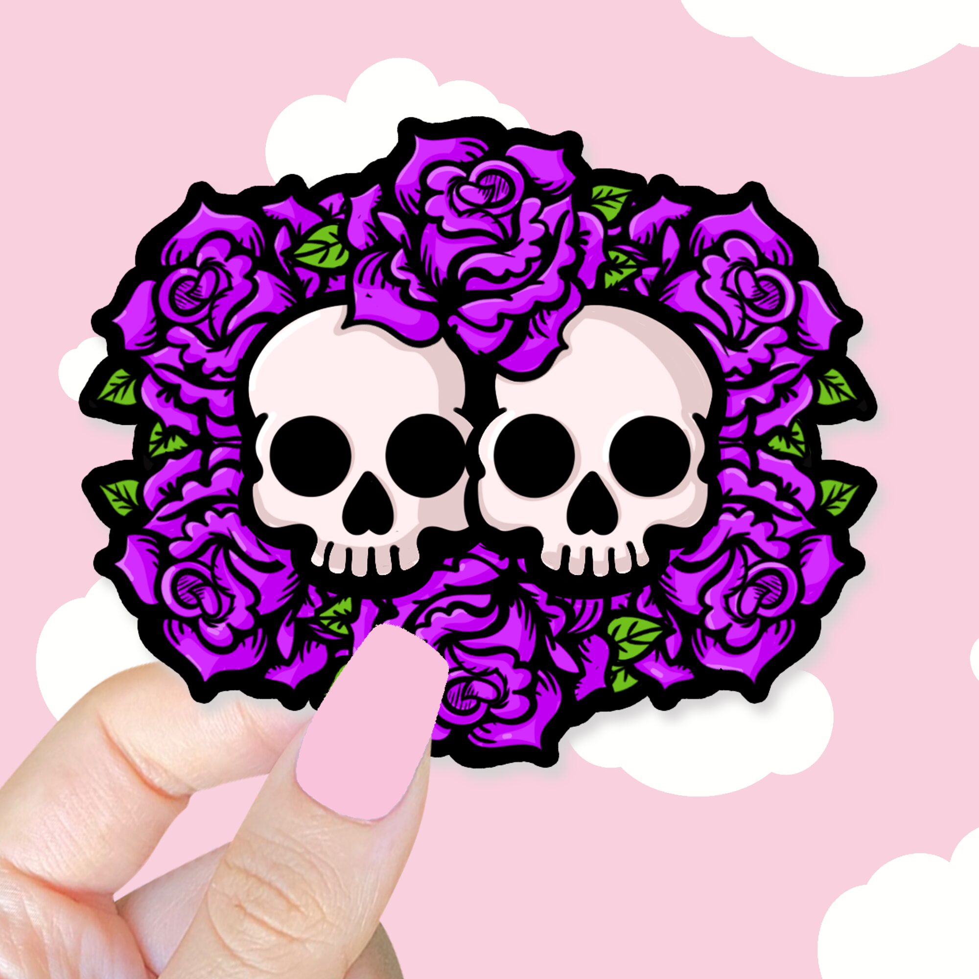 The Together In Death Purple Sticker is a striking blend of gothic beauty and romantic symbolism, bringing together imagery of love, mortality, and elegance. At its heart are two skulls resting closely side by side, a representation of unity and devotion that endures even beyond the limits of life itself. Surrounding them are lush purple roses, rich in meaning and mystery, which add depth and softness to the design. The roses frame the skulls in a way that feels both tender and powerful, creating an aesthetic that is haunting yet undeniably beautiful. 💜💀