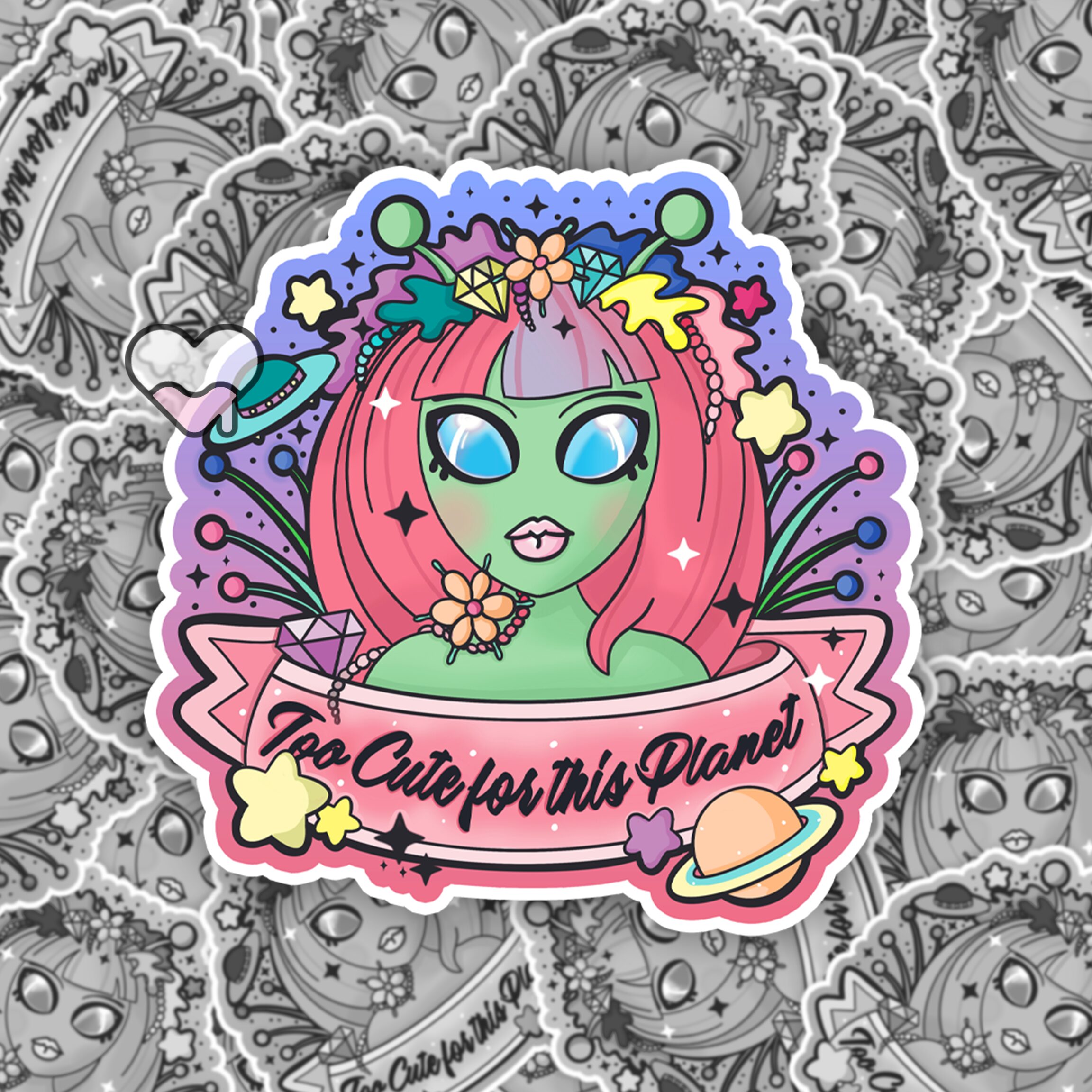 The Too Cute For This Planet Sticker is a playful and whimsical design that combines otherworldly charm with a sprinkle of sass. At the center of this delightful sticker is an adorable alien girl, radiating a kind of sweetness that feels like it could only come from another galaxy. Her presence is both captivating and endearing, making her the perfect mascot for anyone who has ever felt a little out of this world. Accompanying her is the bold and fun phrase, “Too Cute For This Planet,” a message that celebrates uniqueness and self-confidence in the most charming way. 🌌👽