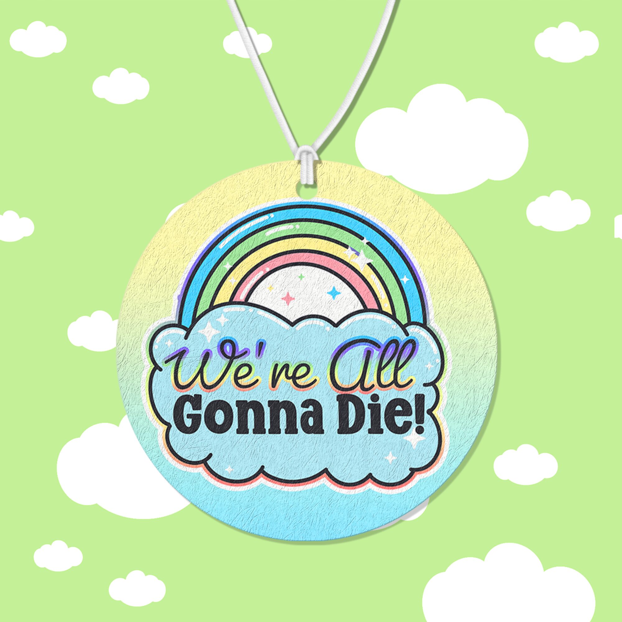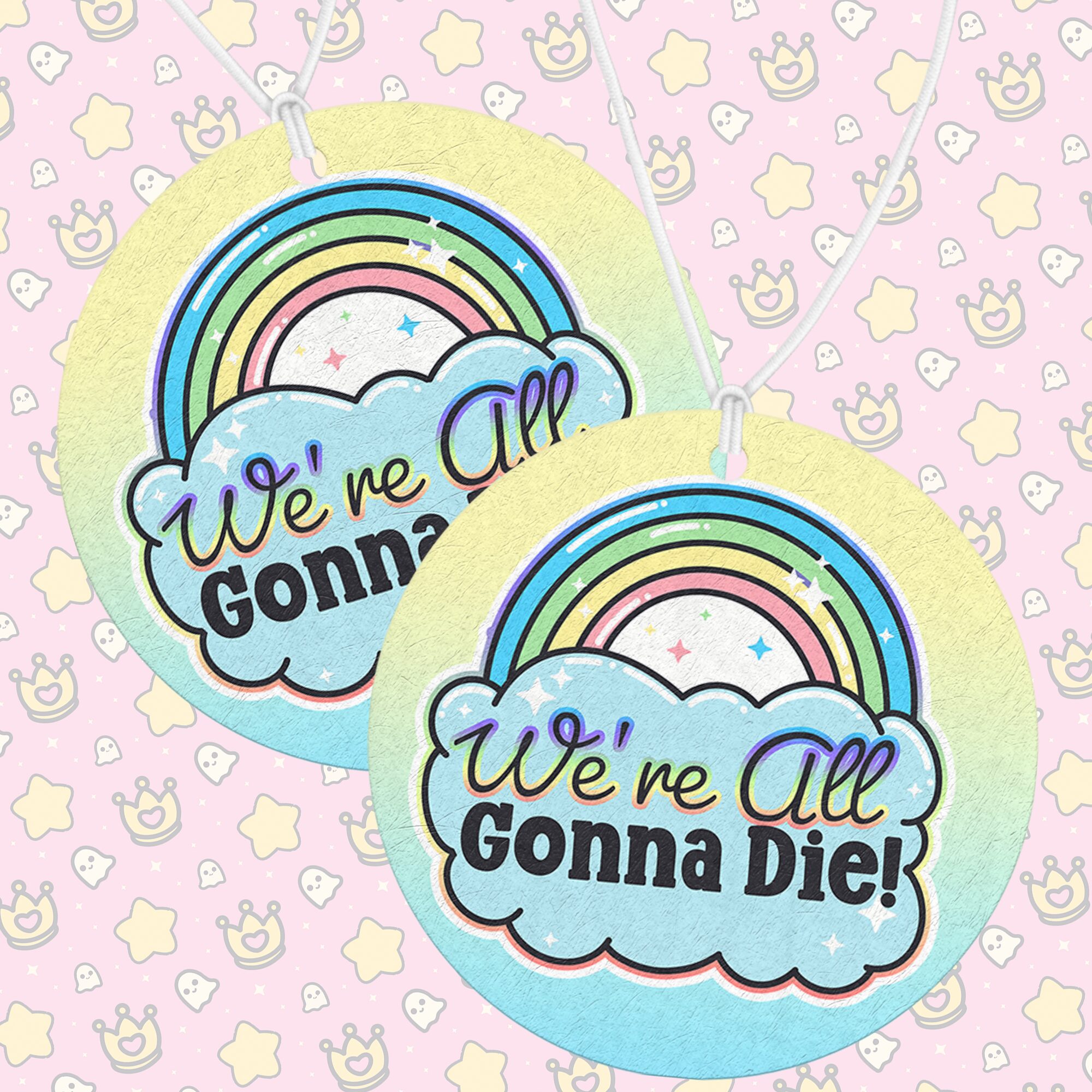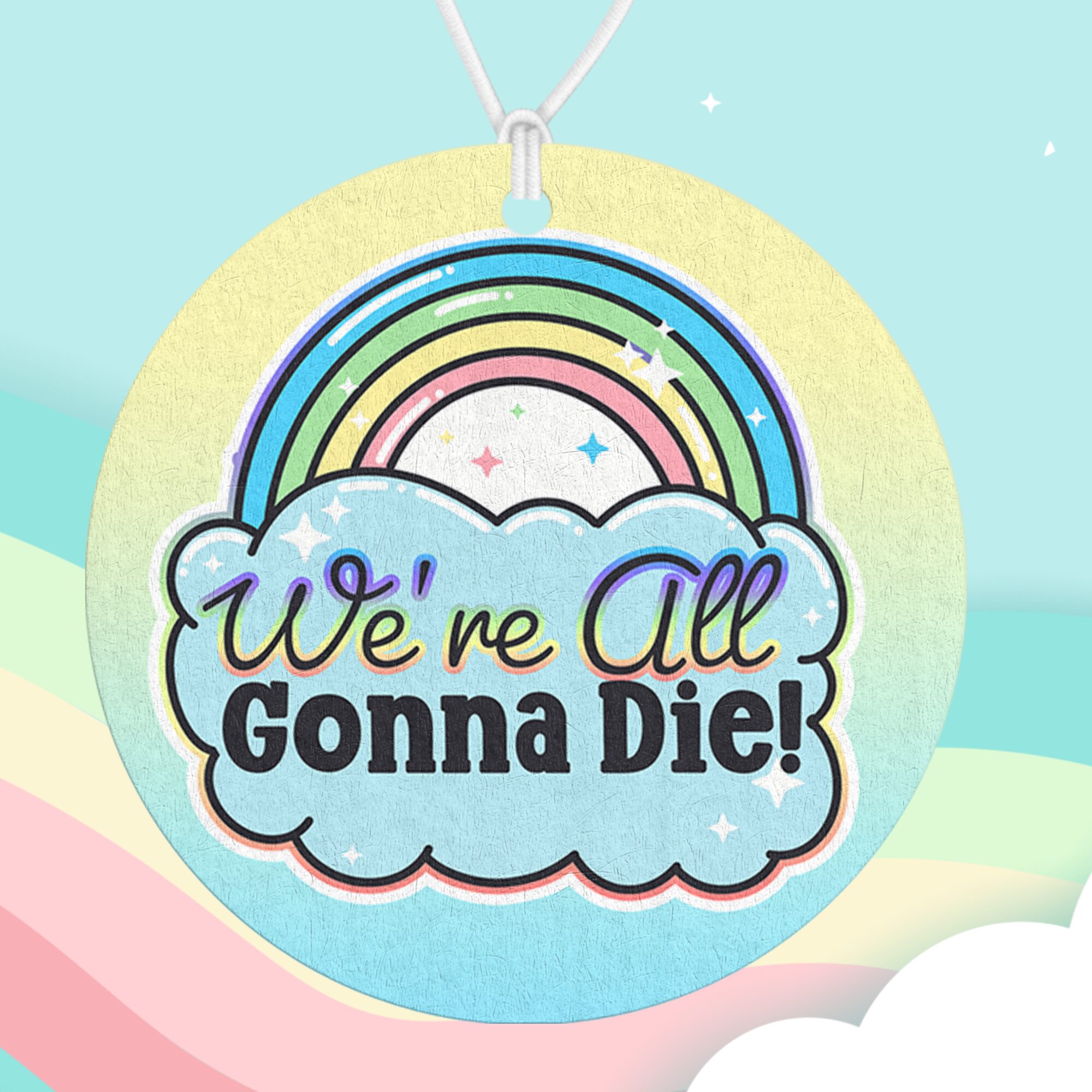 Whether you’re gifting it to a friend who loves a mix of cute and dark humor or keeping it for yourself as a quirky daily companion, the “We’re All Gonna Die Air Freshener” is a unique, charming, and hilariously honest accessory. Hang it proudly and let this sunny little cloud and rainbow serve as a whimsical reminder that life is fleeting—but it doesn’t mean you can’t have a little fun while you’re here.