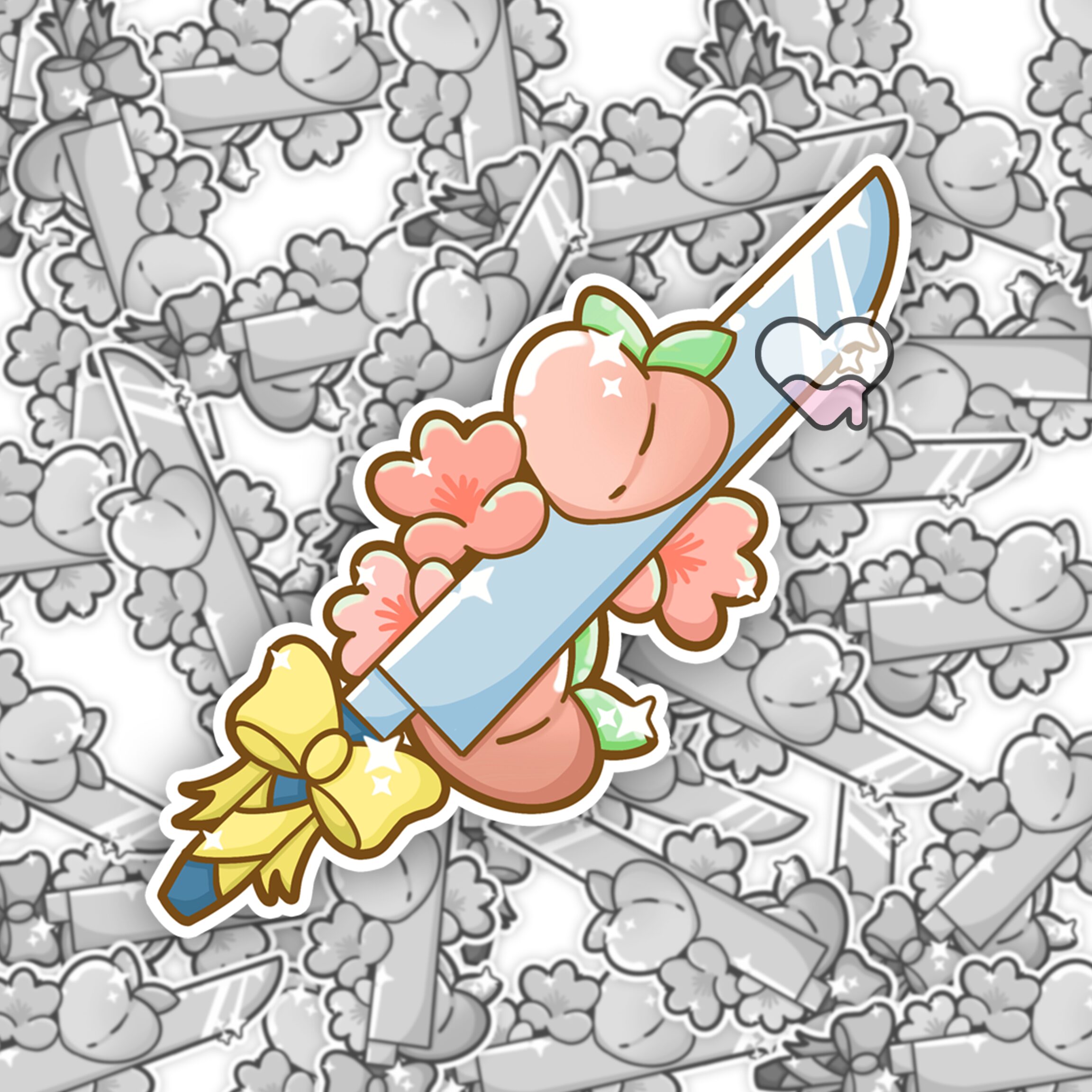 The Yellow Peach Sword Sticker is a striking blend of elegance, strength, and whimsy, capturing the beauty of contrast in a single design. At its heart lies a beautifully detailed long sword, sleek and powerful, yet softened by the charming addition of delicate peaches and a cheerful yellow bow. This balance between fierce and sweet creates a sticker that feels both enchanting and unique, making it the perfect piece for anyone who loves designs that tell a story of harmony between toughness and tenderness. 🍑