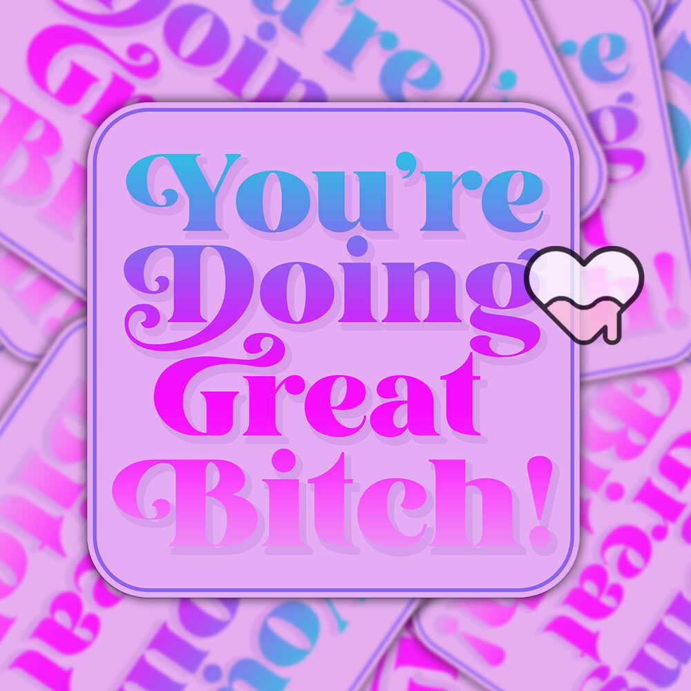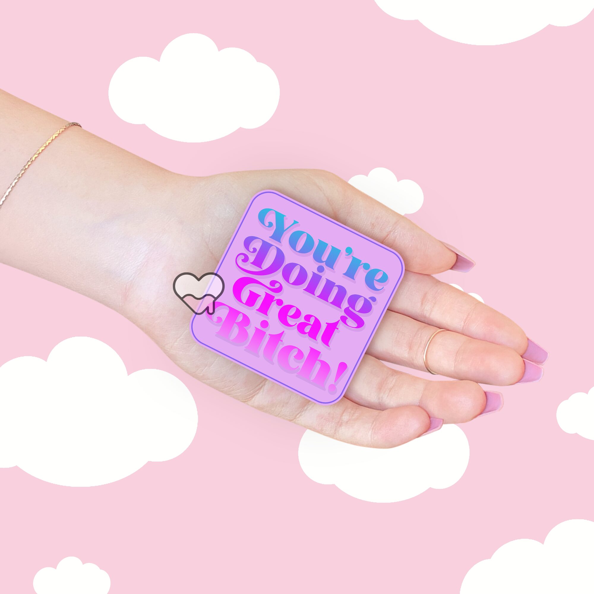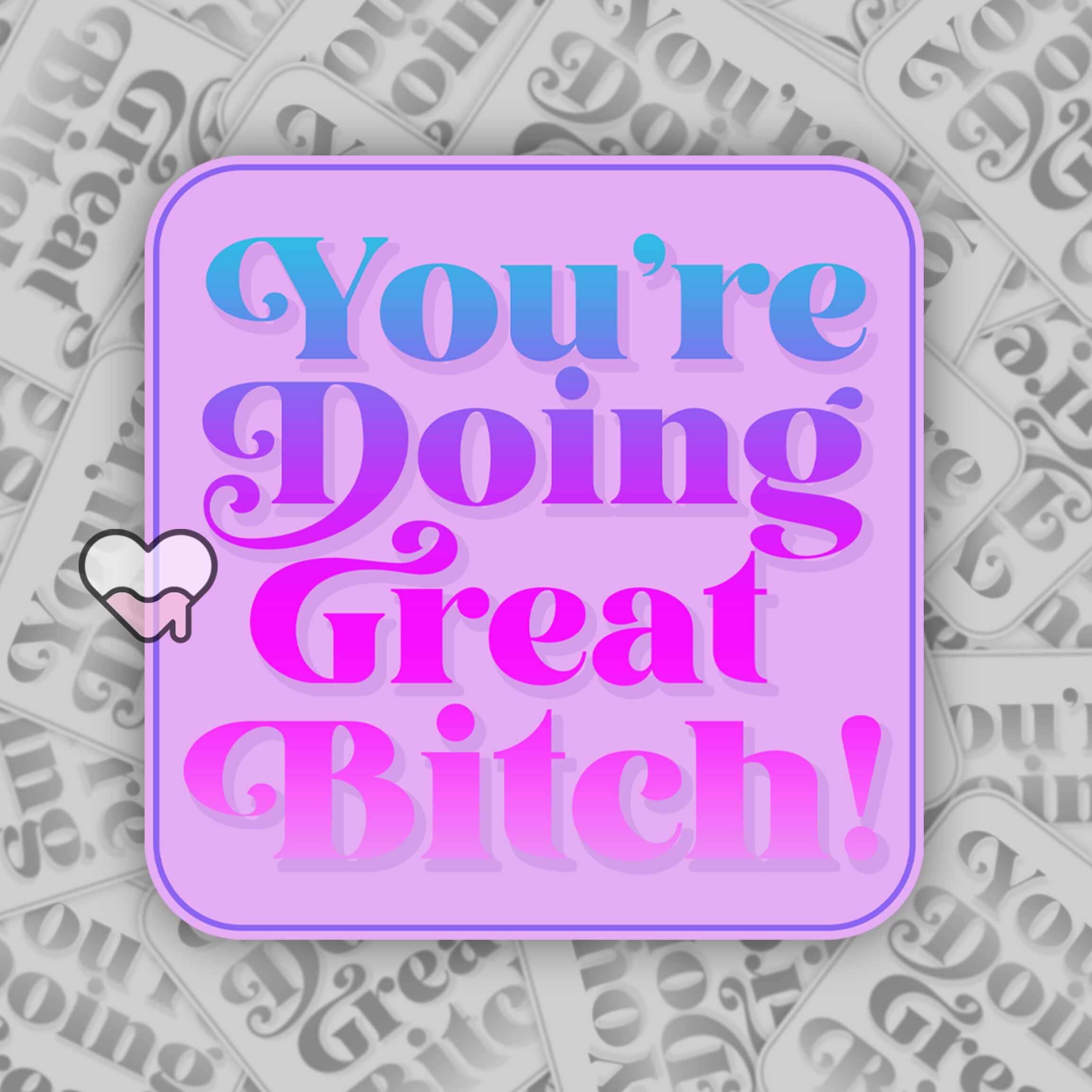 The You’re Doing Great Bitch Sticker is the unapologetic pep talk you didn’t know you needed, wrapped up in a bold little design that packs a punch. Sometimes, encouragement doesn’t need to be subtle or gentle—it needs to be loud, direct, and dripping with attitude. This sticker captures that perfectly, making it the kind of affirmation that brings a smile to your face every time you see it. It’s not just about motivation; it’s about owning your journey with confidence and humor. 🌟🔥